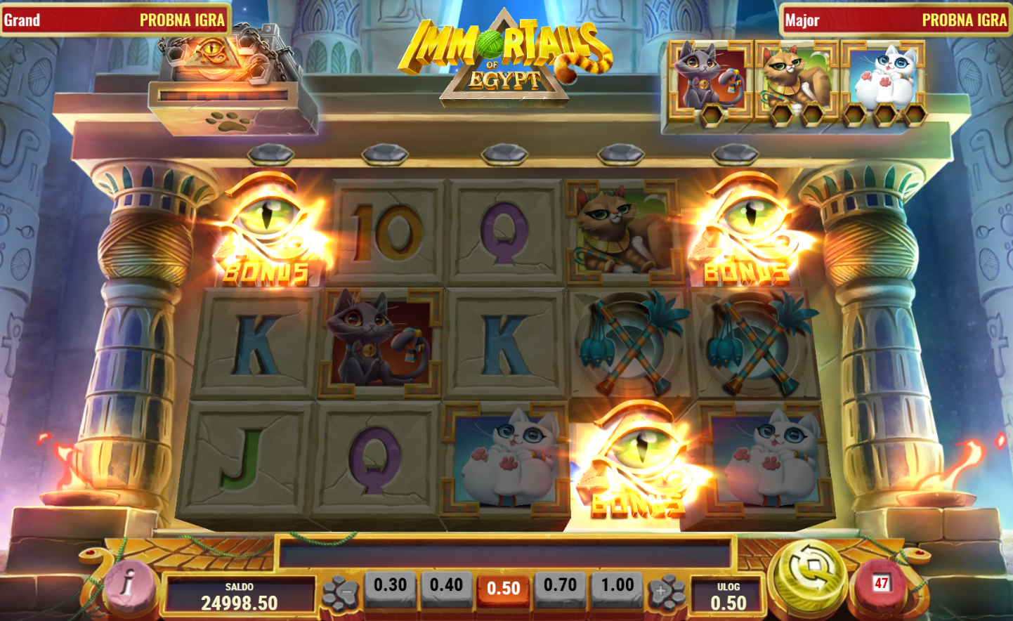 besplatne vrtnje proširuju role i donose dodatne prilike za dobitak. Vizuali su impresivni, animacije teku glatko, a glazba te odvodi ravno u srce piramida. Ako voliš igre koje kombiniraju akciju i mitologiju – uživat ćeš u svakom spinu!