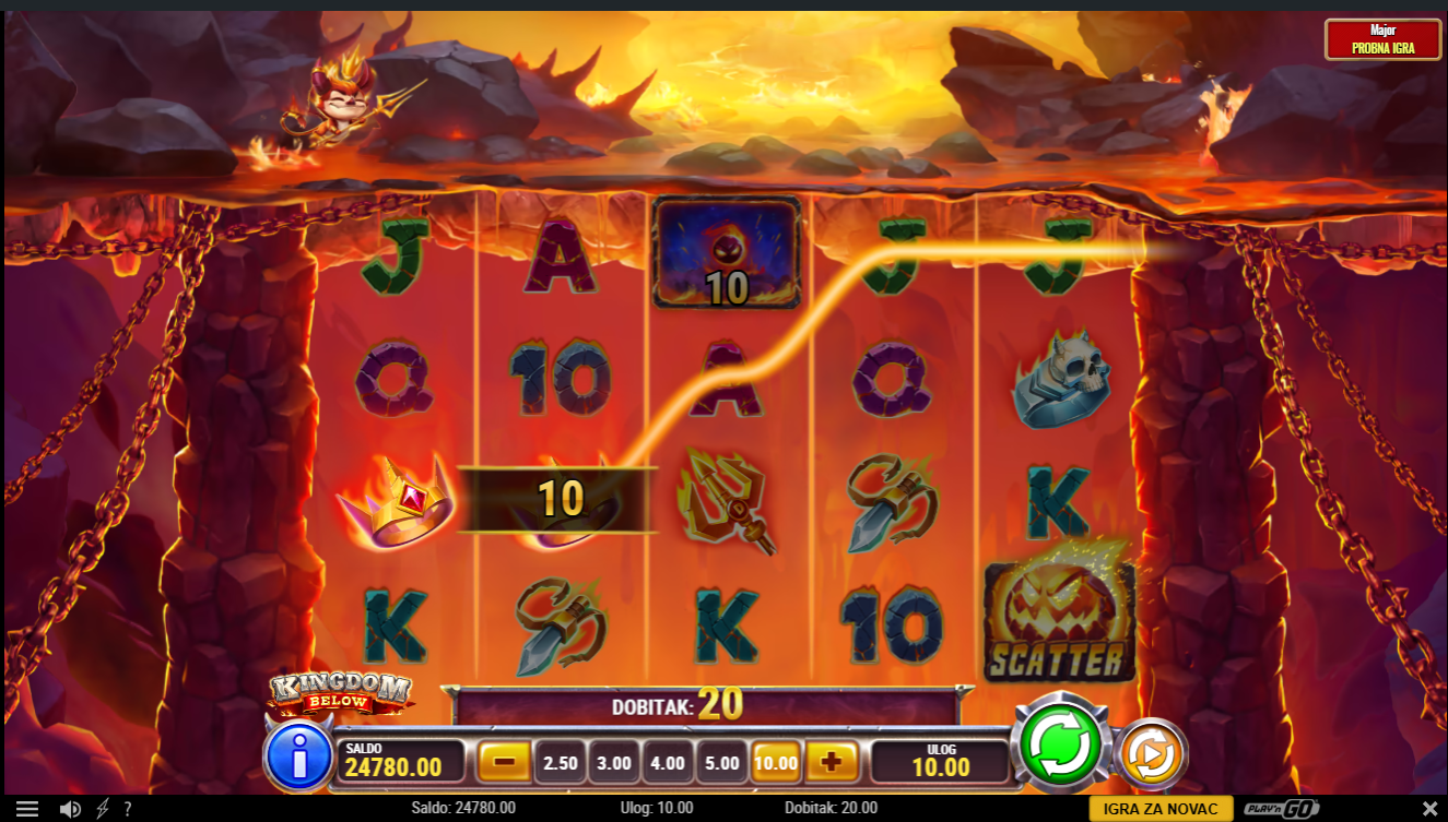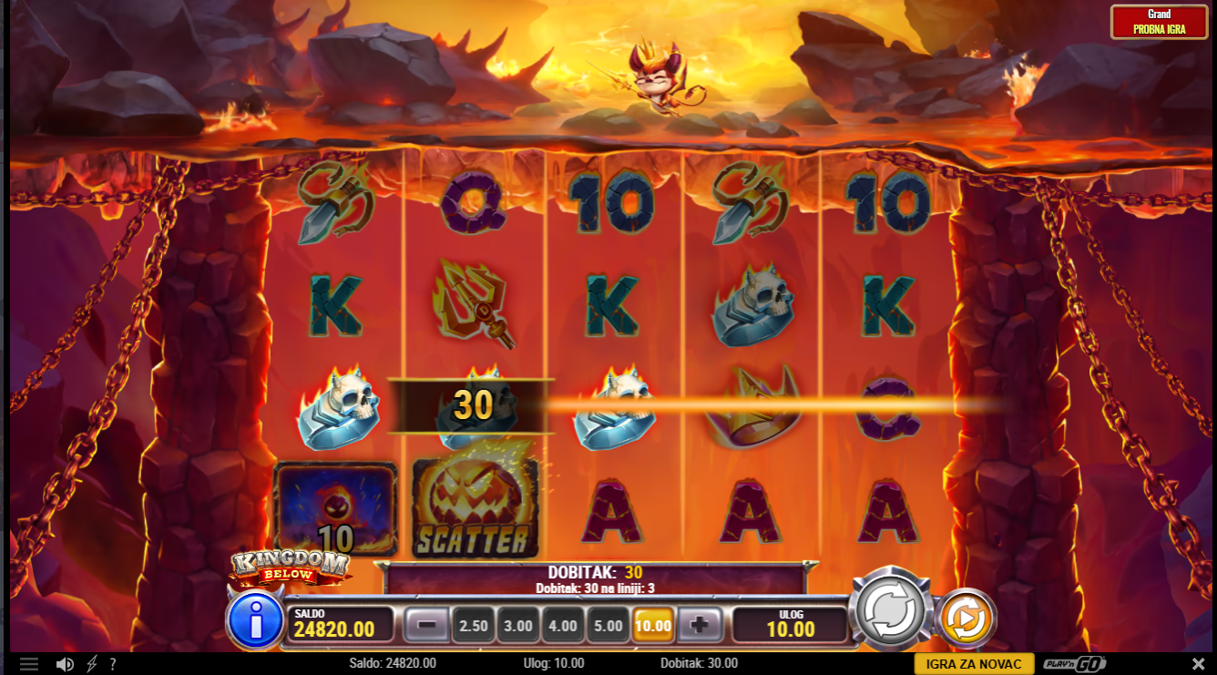 Kingdom Below od Play'nGovodi igrača u tajanstvenu vatrenu površinu ispod zemlje. Ovo je kraljevstvo okruženo lavom, lancima, stupovima i simbolima u plamenu. Atmosfera je mračna, dramatična i intenzivna. Igra vizualno oduzima dah- lava blješti, animacije su fluidne, a pozadinska glazba pojačava osjećaj opasnosti.