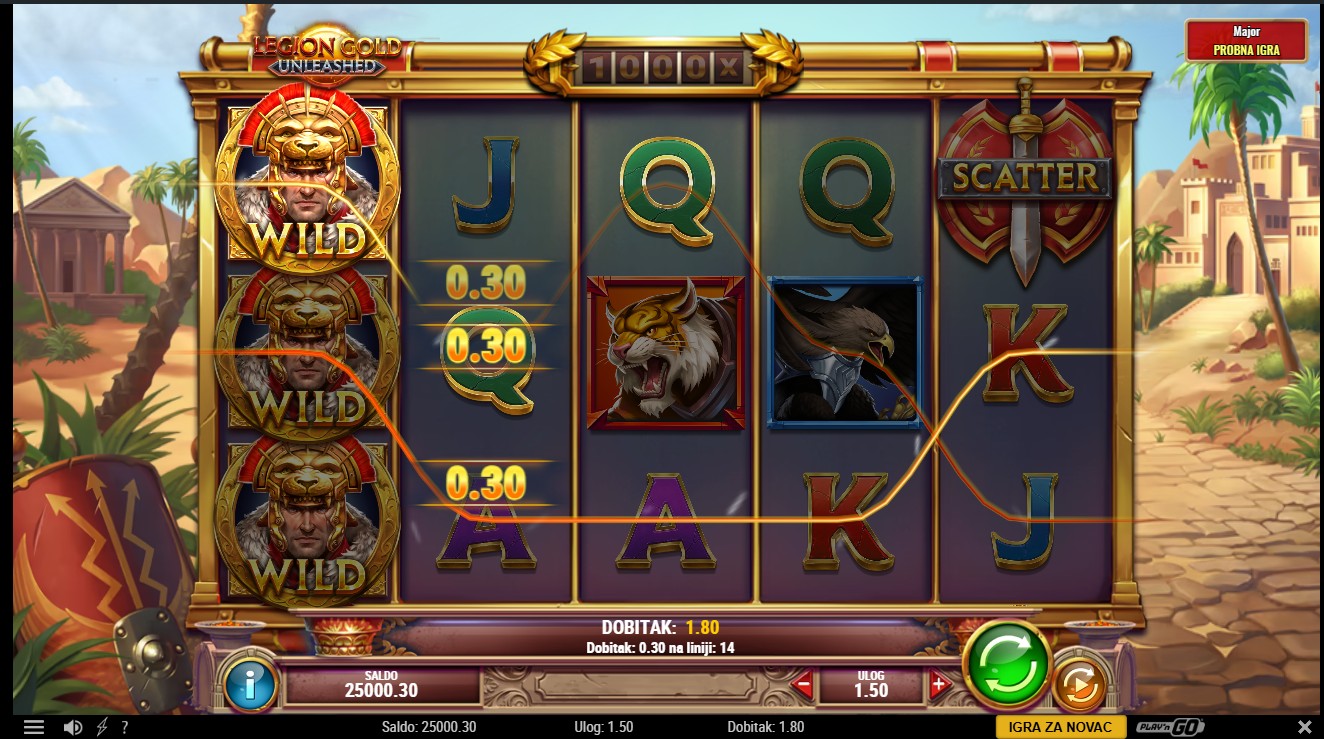 Legion Gold Unleashed ima RTP od 96,25%, što znači da pruža vrlo solidne šanse za dobitak tijekom igre. Volatilnost je srednja što povećava uzbuđenje jer igra može donijeti značajne dobitke, osobito tijekom bonus značajki. Idealna je za igrače koji vole dinamičnu s potencijalom za veće nagrade.