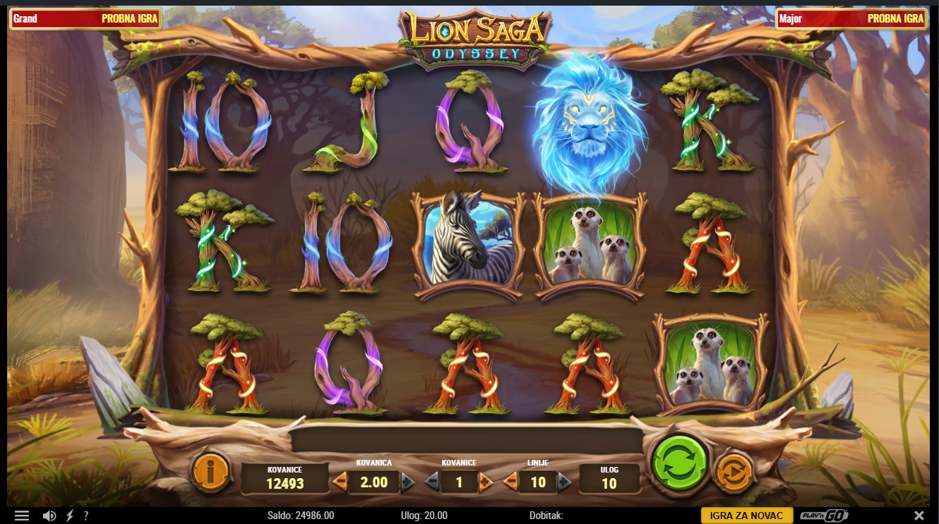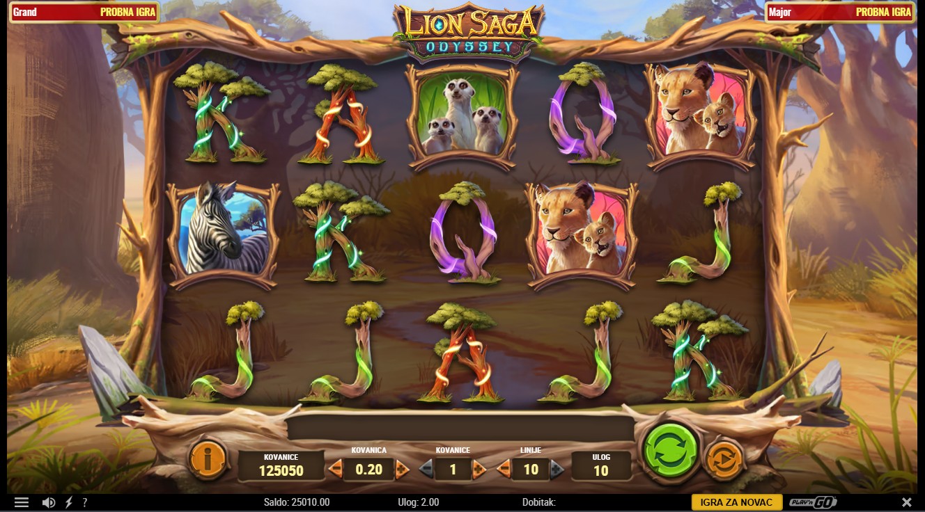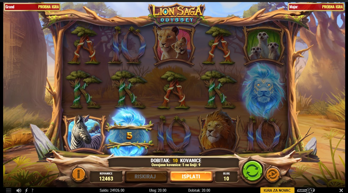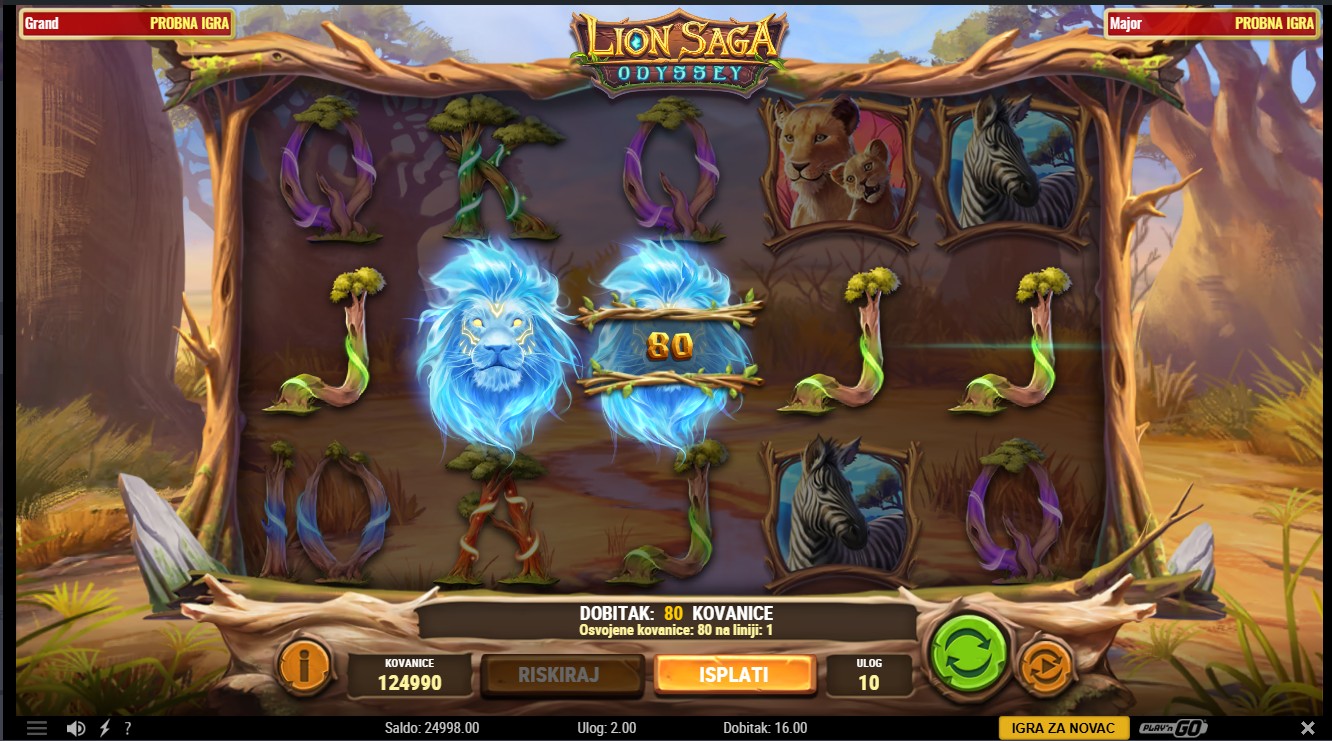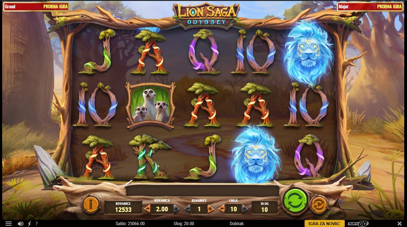 Lion Saga Odyssey se igra na 5 rola i do 10 fiksnih isplatnih linija. Scatter simboli pokreću Free Spins, dok se posebni šireći simboli pojavljuju nasumično i mogu se širiti preko cijelih rola, donoseći dodatne dobitke. Tijekom Free Spins moguće je ponovno aktivirati bonus i dobiti nove šireće simbole. Igra ti nudi i mogućnost Riskiranja, koje ti omogućuje udvostručavanje ili učetverostručavanje dobitaka u glavnoj igri. Jackpot se može osvojiti nasumično tijekom igre, a njegov iznos raste sa svakim okretajem.