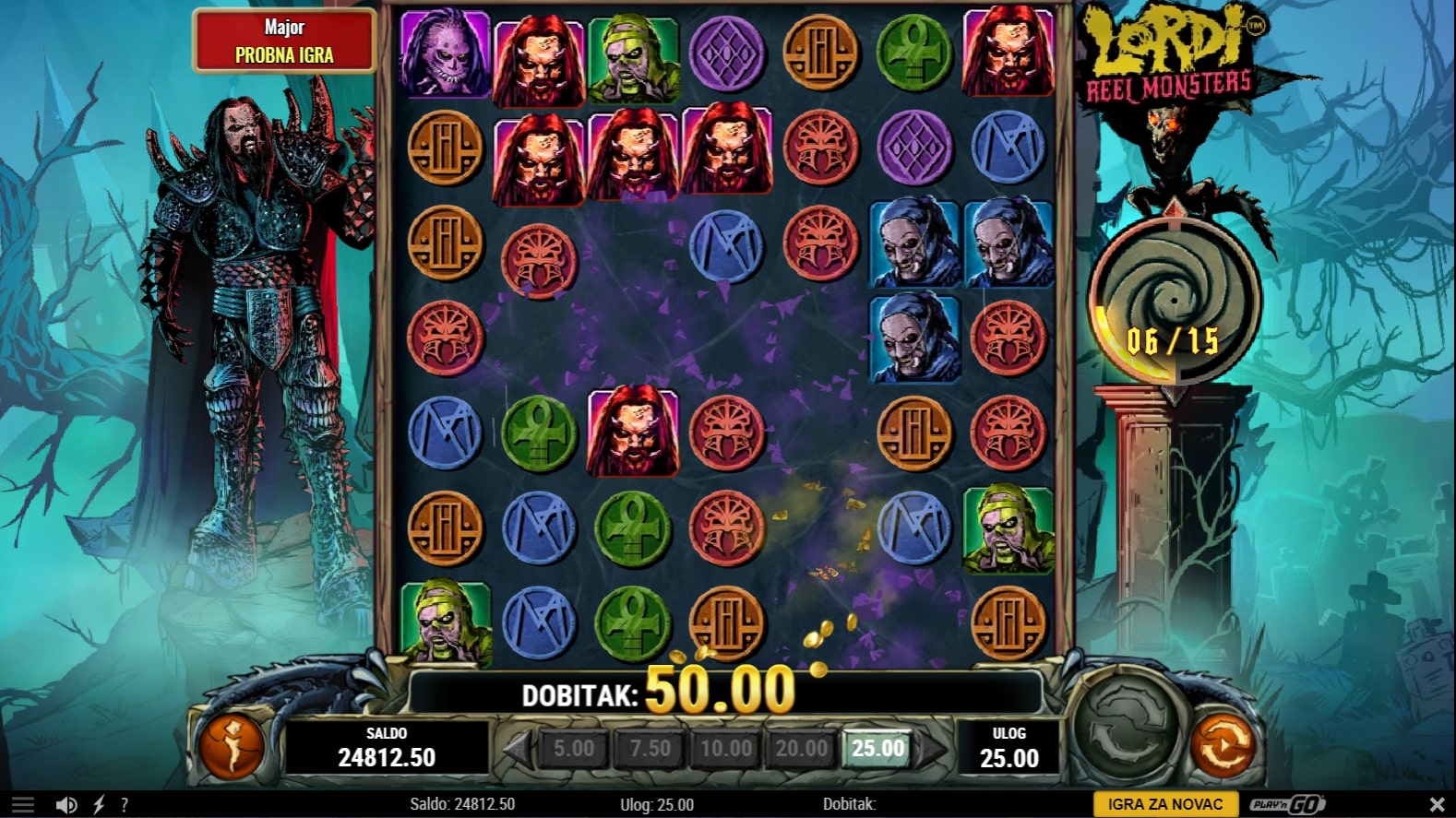 Lordi Reel Monsters tematska je slot igra inspirirana žanrom horora koja vodi igrača u ukleti svijet pun čudovišta i fantastičnih dobitaka. Upravo simboli čudovišta isplaćuju najveće dobitke, dok simbol lubanje može zamijeniti druge simbole u potrazi za dobicima. Igra uz to sadrži Monster Charger koji se puni stvaranjem dobitnih kombinacije, a ukoliko dođe do 40 punjenja aktiviraju se besplatne vrtnje. Zaigraj Lordi Reel Monsters te osvoji super nagrade!