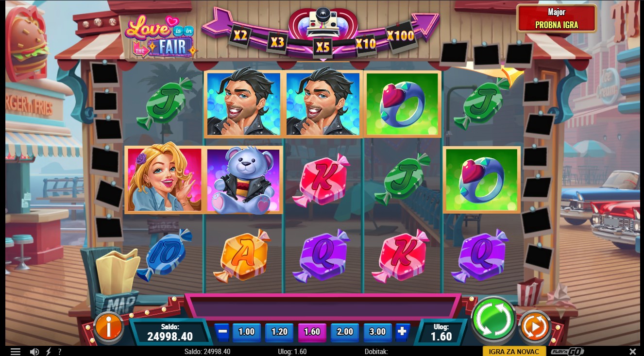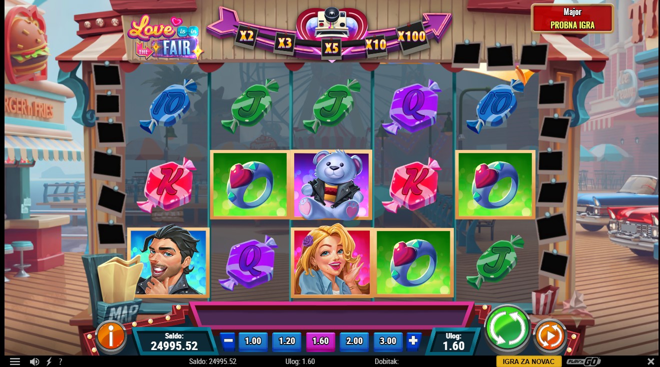 Love is in the Fair se igra na 5 bubnjeva i 20 fiksnih isplatnih linija. Scatter simboli pokreću Free Spins, dok Multiplier Wild simboli povećavaju dobitke i njihova vrijednost raste s brojem sakupljenih Scatter simbola. Dodatni Free Spins se dodjeljuju tijekom skupljanja Scatter simbola. Igra sadrži i progresivni jackpot s razinama Grand i Major, koji ti donosi još više uzbuđenja.