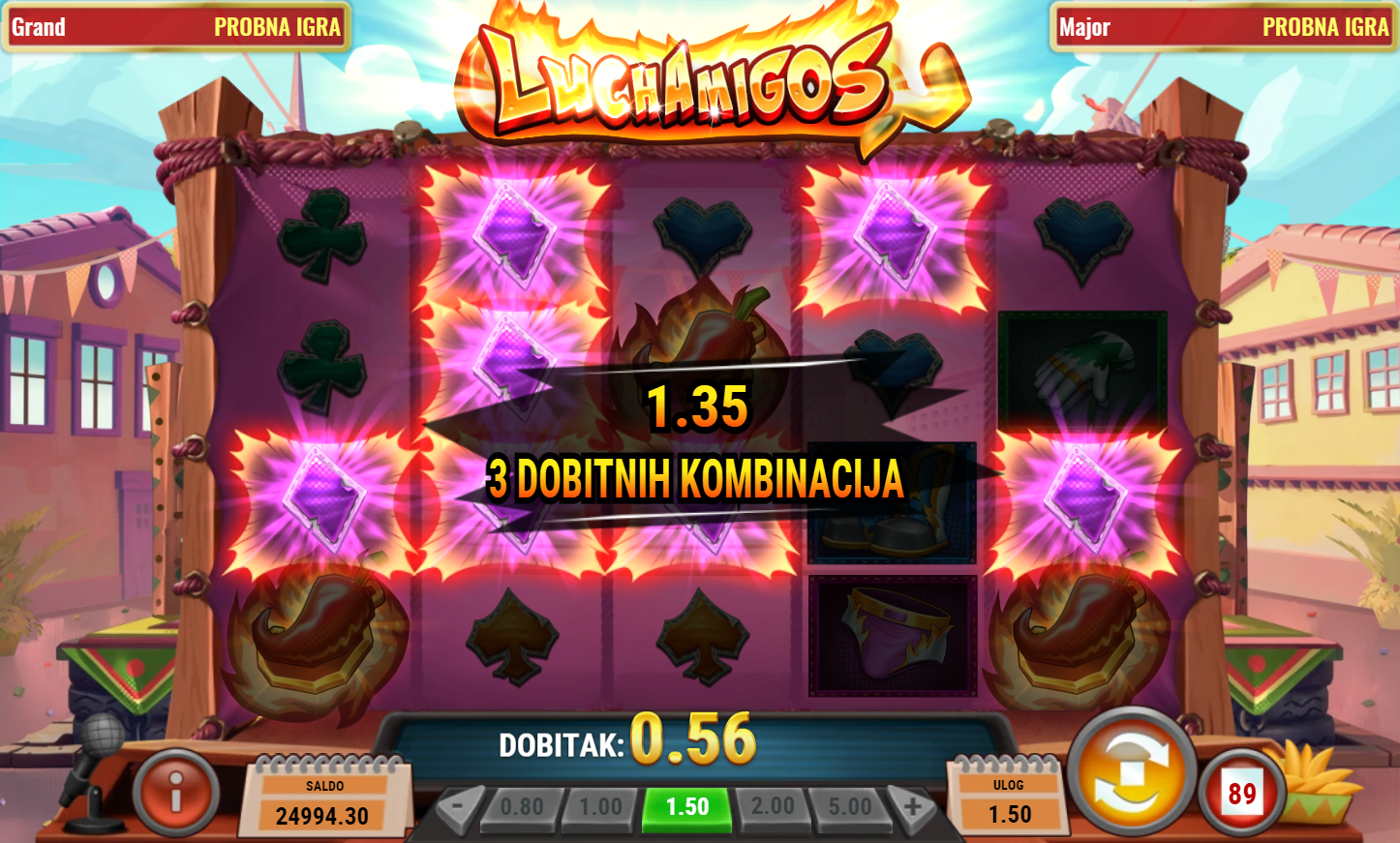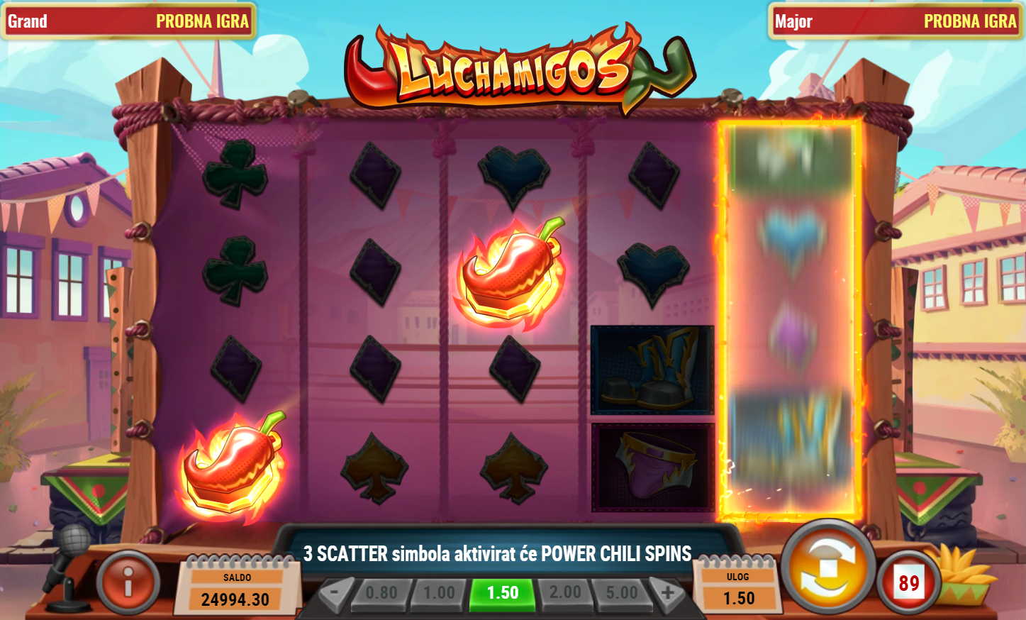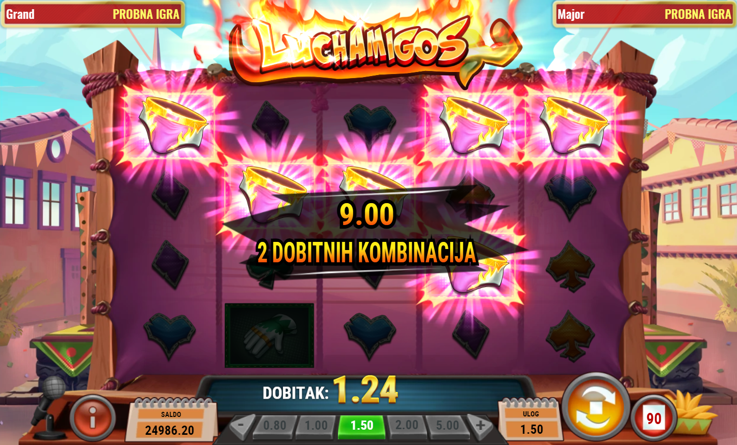 Luchamigos je uzbudljiv video automat s 5 rola i čak 1024 mogućnosti za dobitak, inspiriran živopisnim svijetom meksičkog hrvanja. Ova igra pruža brojne prilike za velike dobitke zahvaljujući jedinstvenim bonus značajkama kao što su Amigo Wild simboli i Power Chili free spinovi. S bojama i energijom koji će te odmah osvojiti, Luchamigos nudi priliku za nevjerojatne dobitke uz svaku vrtnju. Svaki spin donosi potencijal za nasumične bonuse, što igru čini nevjerojatno dinamičnom i zabavnom. Uroni u svijet Luchamigosa i iskoristi šansu za osvajanje velikih nagrada!