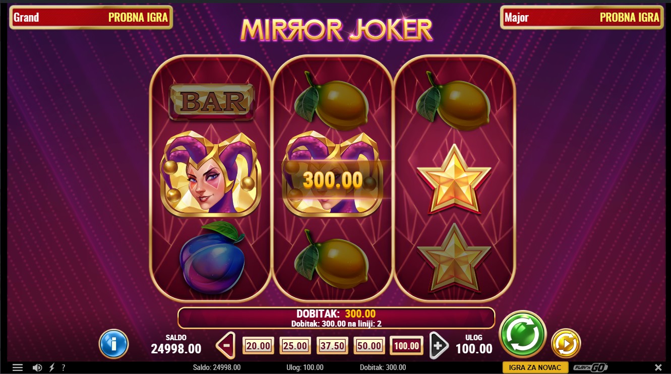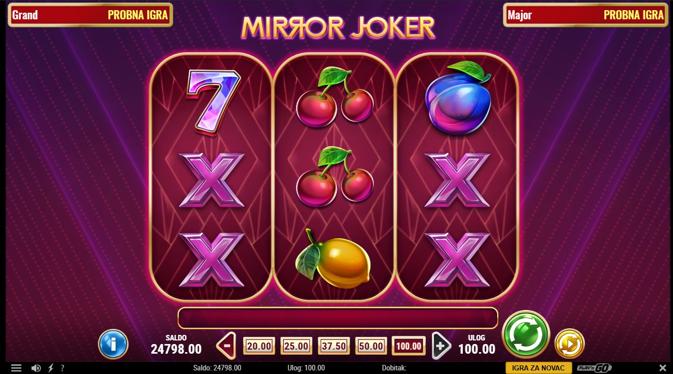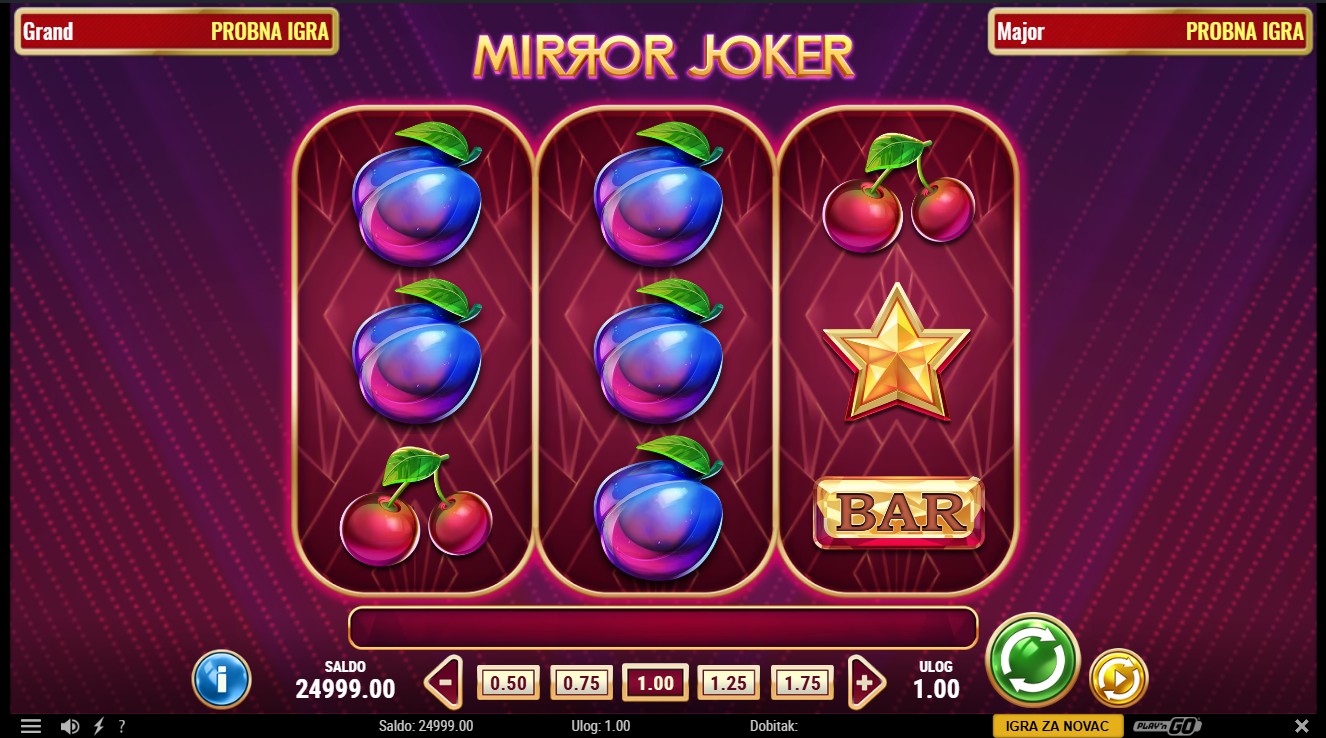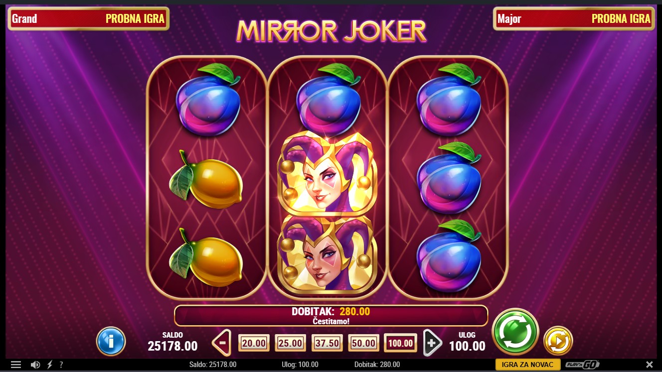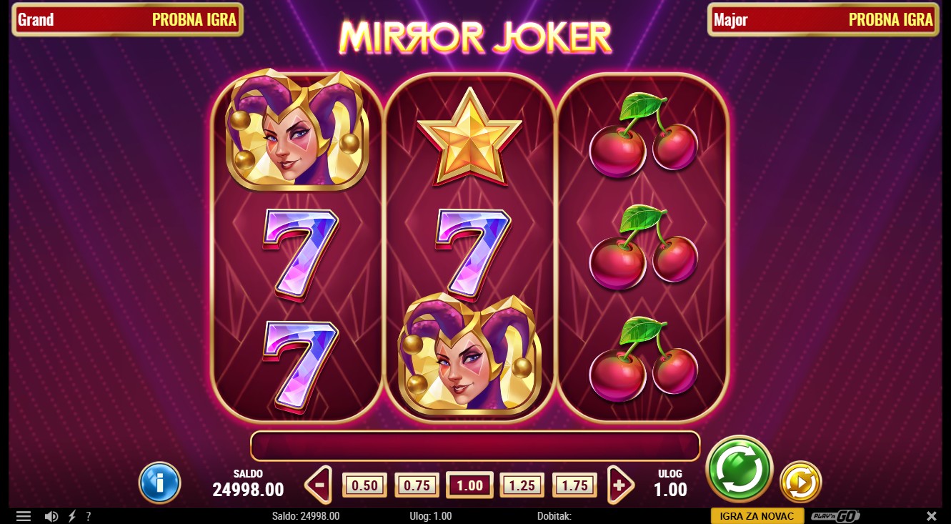 Mirror Joker je slot igra providera Play'n GO s 3 role i 5 fiksnih isplatnih linija. Igra donosi uzbudljivu bonus značajku Mirror Re-Spin koja proširuje role i povećava broj isplatnih linija na 10. Joker i Mirror Joker simboli zamjenjuju ostale simbole, a Mirror Joker aktivira isplatu dobitka u oba smjera tijekom Mirror Re-Spin značajke. Bonus se aktivira kada su dva ili tri role složene s istim simbolom, proširujući mrežu i dodjeljujući besplatnu vrtnju s nepomičnim naslaganim simbolima.