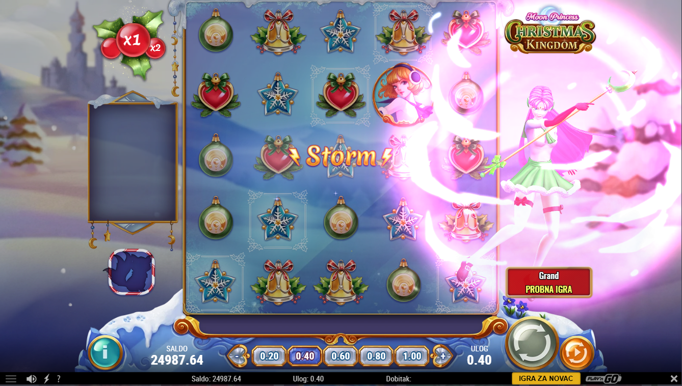 Uroni u čarobni svijet uz Moon Princess: Christmas Kingdom od PlaynGo s moćnim princezama koje čuvaju nevjerojatne dobitke! Svaki spin nosi nove čarolije, rastuće multiplikatore i šansu za ulazak u raskošne besplatne vrtnje. Pridruži se Love, Star i Storm i njihovoj blagdanskoj avanturi!