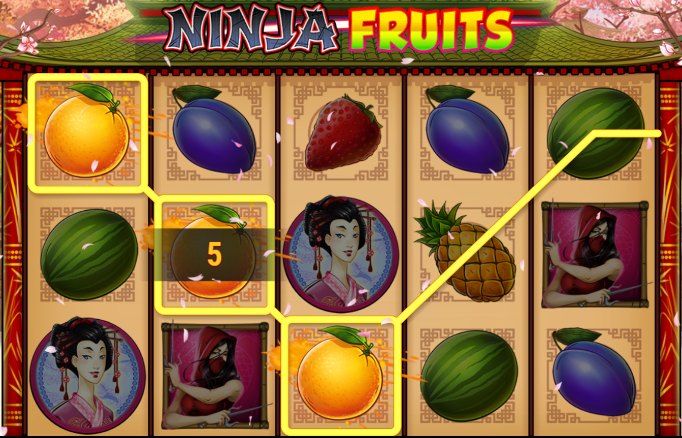 Dobrodošao u Ninja Fruits, voćnu fantaziju u kojoj ninja svojim oštrim shurikenima pokušava odgonetnuti iza koje se voćne kombinacije krije ogroman jackpot. Radnja se odvija u drevnom Japanu kroz kojeg putujući, ninja traži pravog pustolovca, dovoljno odvažnog za ovaj zadatak. Naoštri svoj shuriken i preciznost, te pomozi ninji pogoditi pravo voće. Možda si baš ti ono što ninji nedostaje kako bi došao do velikih dobitaka i jackpota!