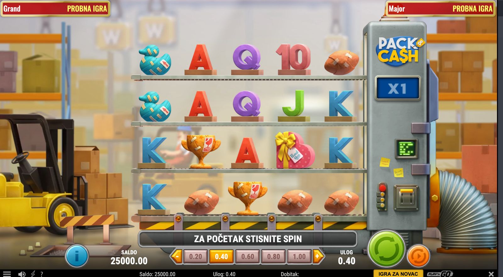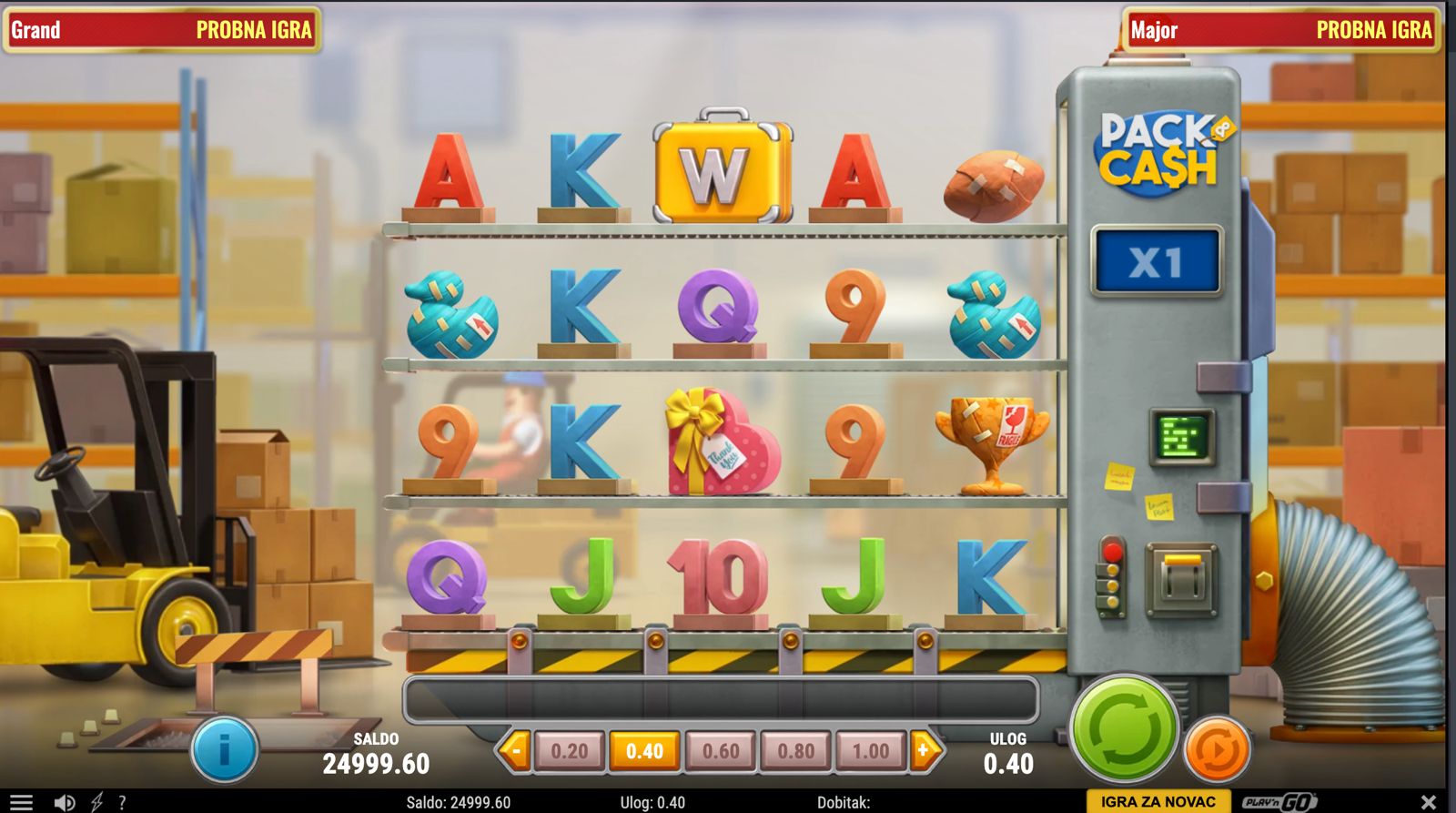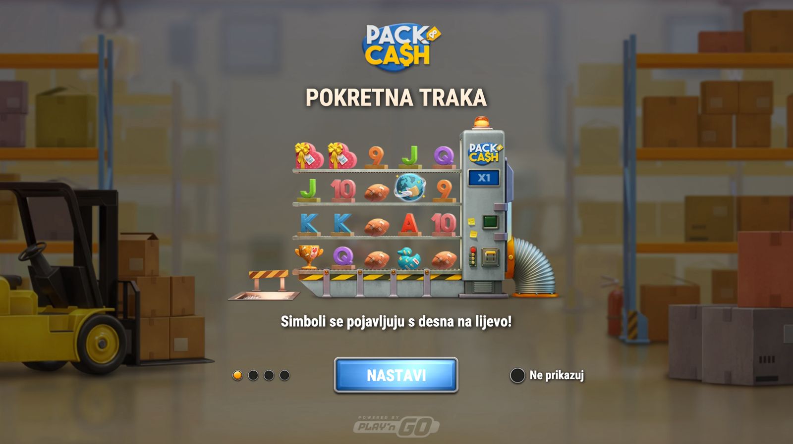 Pack & Cash je video slot razvijen od strane Play'n GO, smješten u svijet skladišta i dostave. Igra se odvija na 5 kolona i 4 reda, s 1.024 načina za dobitak. Osnovni cilj je složiti dobitne kombinacije od lijeva prema desnu, koristeći simbole koji se pojavljuju na aktivnim linijama. Igra uključuje značajke poput wild simbola, scatter simbola, besplatnih vrtnji i progresivnog multiplikatora.