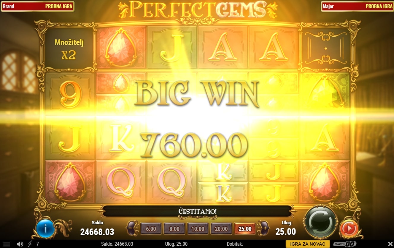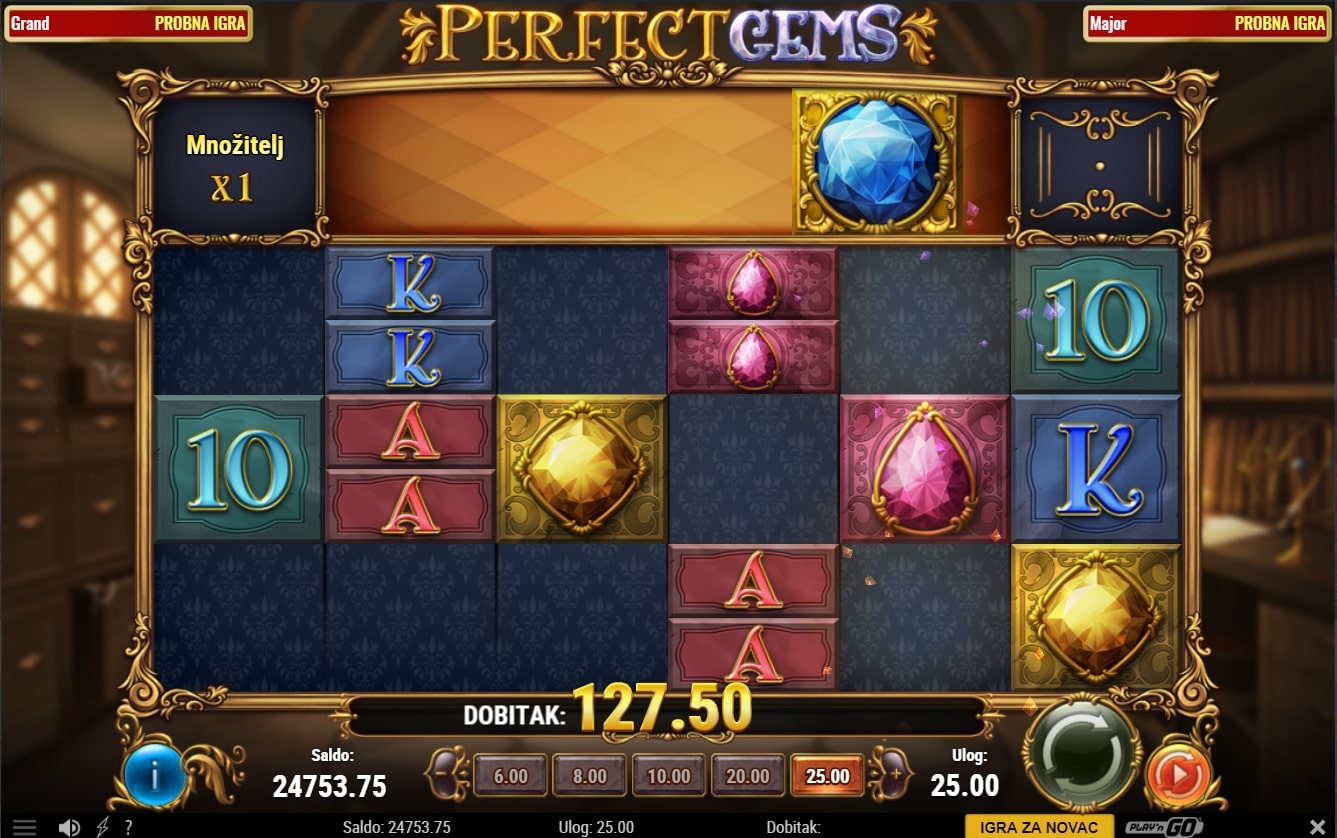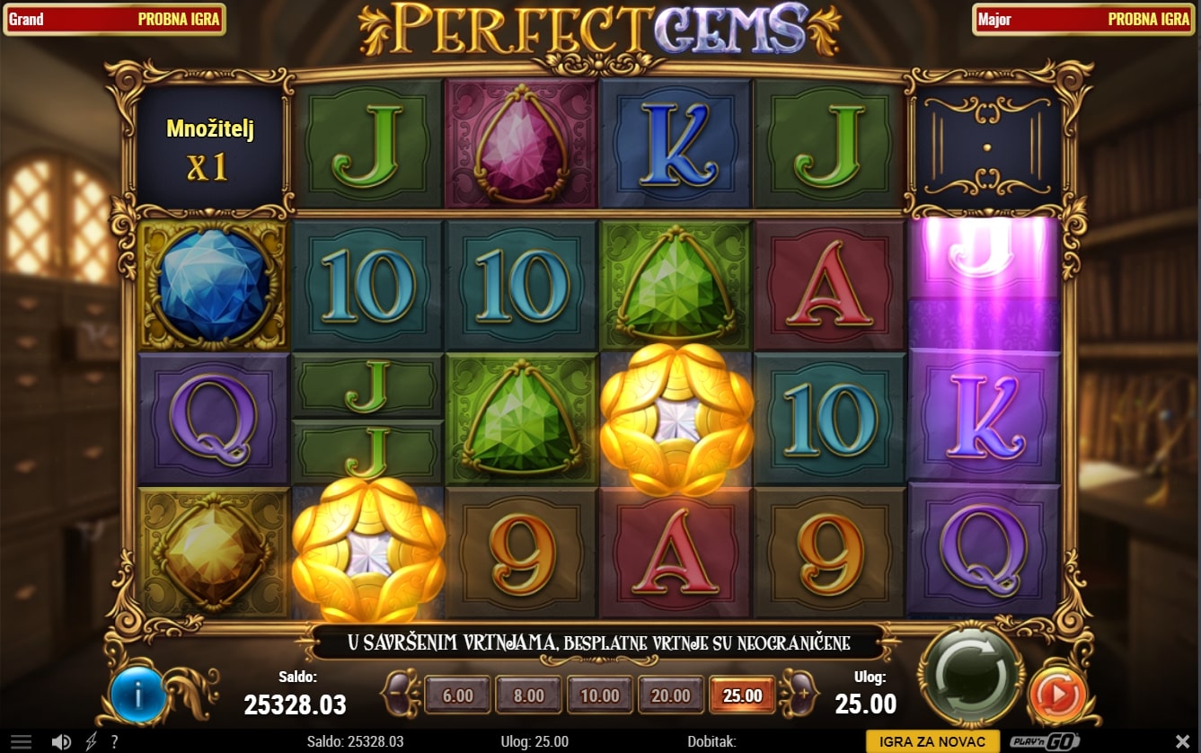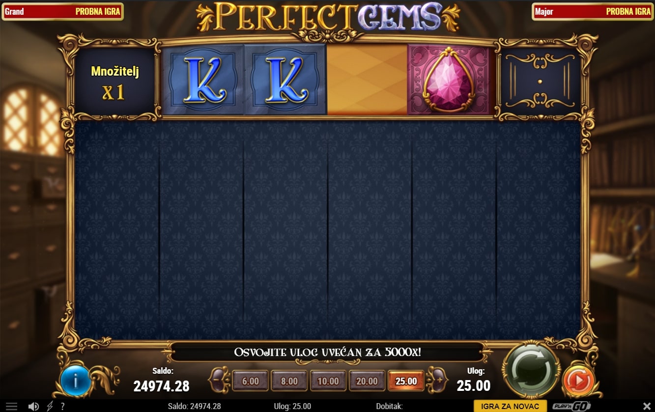 Perfect Gems slot je igra koja vodi igrača u zlatarovu radionicu u susret sa skupocjenim i luksuznim draguljima. Kako su zlatarovi dragulji savršeni, tako je i simbol Scattera savršen te može odvesti igrača do dodatnih savršenih vrtnji. Perfect Gems uz to sadrži zamjenski simbol Wilda, ali i više od 21 000 načina za ostvarivanje dobitaka. Zavrti kolute u slotu Perfect Gems te osvoji vrhunske dobitke.