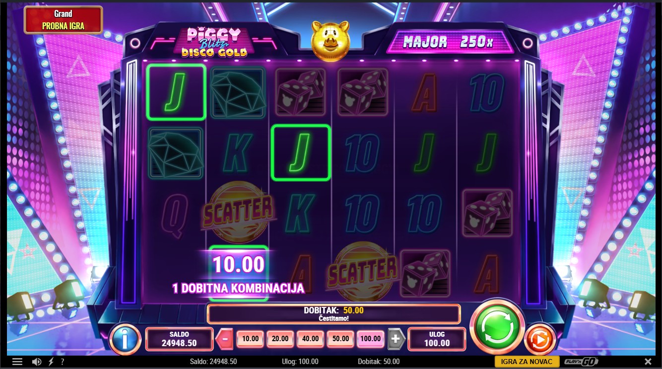 Piggy Blitz Disco Gold ima RTP od 96,27%, što znači da pruža vrlo solidne šanse za dobitak tijekom igre. Volatilnost je srednja što povećava uzbuđenje jer igra može donijeti značajne dobitke, osobito tijekom bonus značajki. Idealna je za igrače koji vole dinamičnu s potencijalom za veće nagrade.