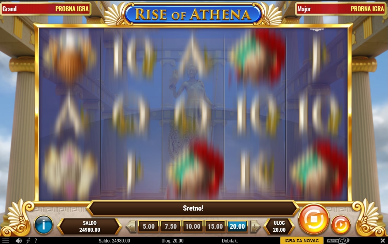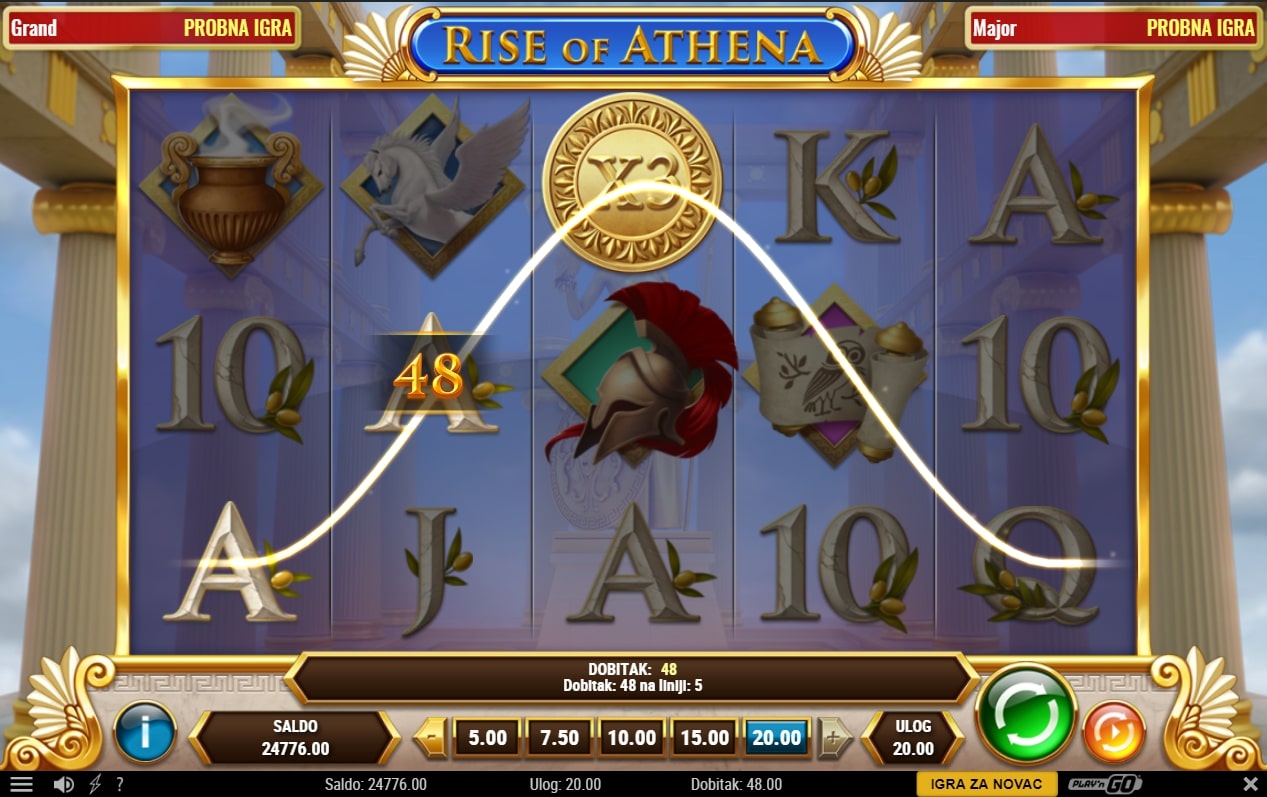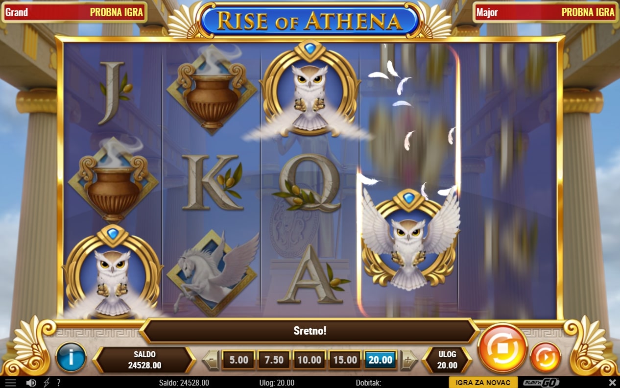 Rise of Athena slot je igra povijesne tematike koja vodi igrača na putovanje u drevnu Grčku u potrazi za generacijskim uspjesima. Najviše isplaćuju simbole Atene, Pegazusa i ratničke kacige, a igra uz to sadrži posebne simbole sove i Wild novčića koji vode igrača u svijet besplatnih vrtnji, odnosno mijenjaju i umnožuju vrijednosti drugih simbola. Zaigraj slot Rise of Athena te osvoji graciozne nagrade!