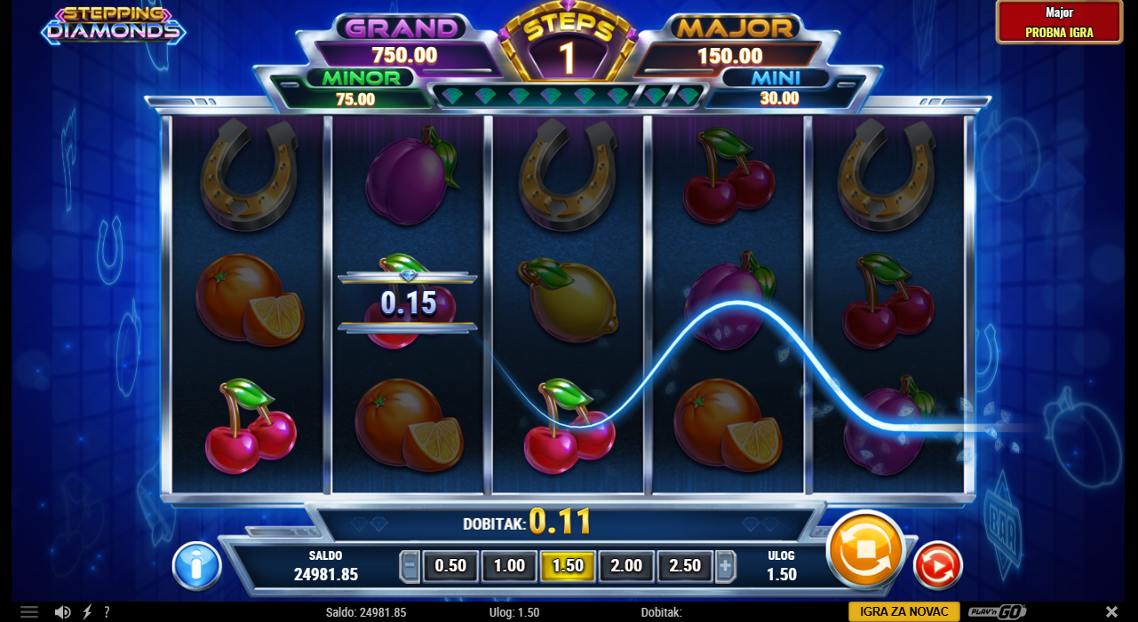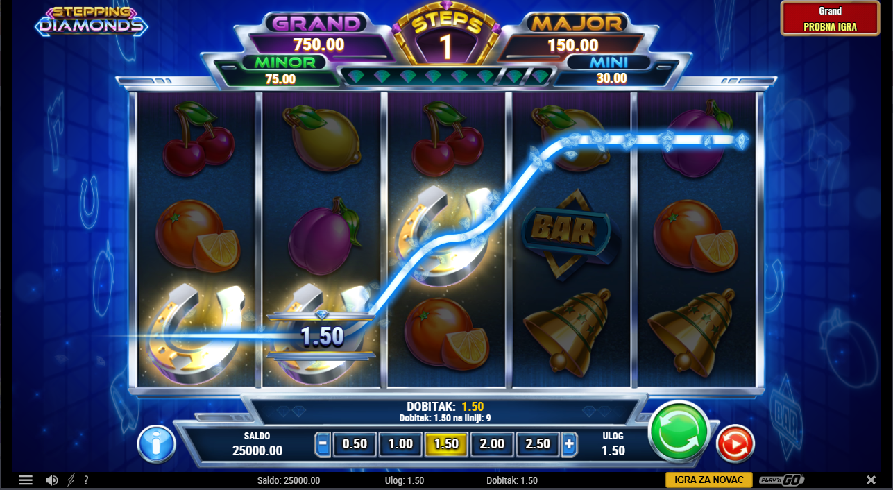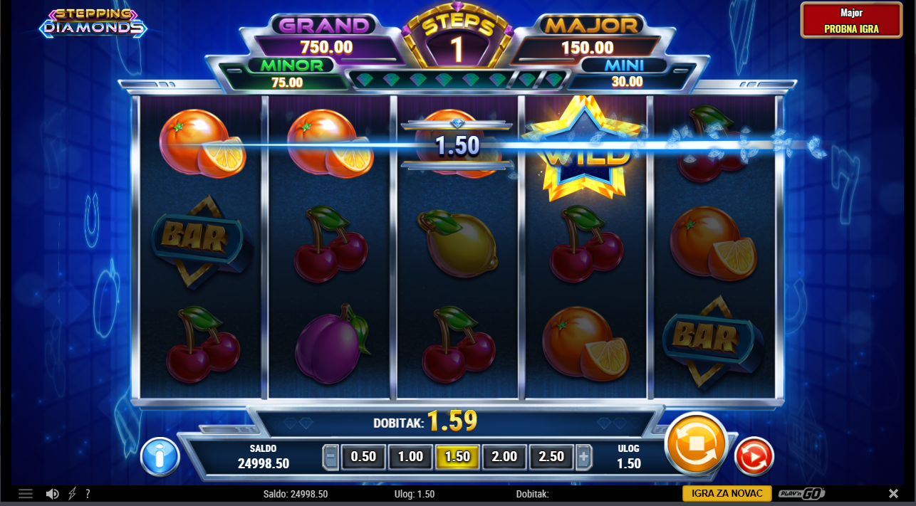 4. Koji su minimalni i maksimalni ulozi u igri Stepping Diamonds?