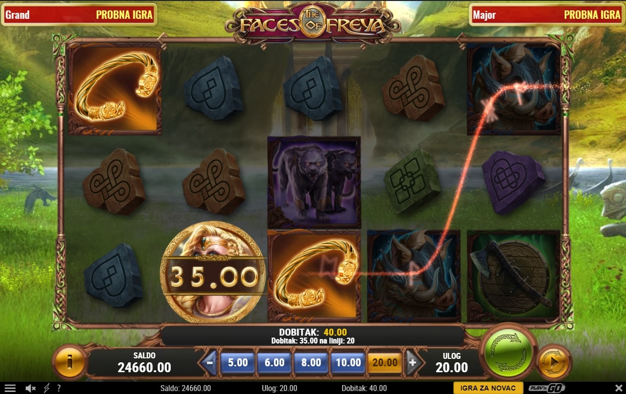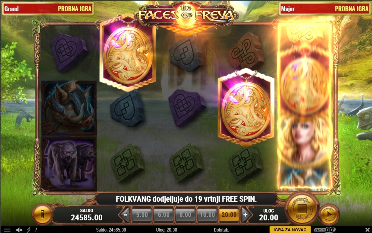 The Faces of Freya slot je igra mitološke tematike koja vodi igrača na hladni sjever u svijet vikinga i borbe za dobitke. Simboli su inspirirani nordijskom mitologijom, dok onaj Freye koja je božica ljubavi i ljepote mijenja druge simbole u potrazi za dobicima. Besplatne vrtnje igrač može otključati nizanjem simbola medaljona, a one su zadužene za slanje dobitaka do vrhunskih razina. Zaigraj The Faces of Freya te osvoji epske nagrade!