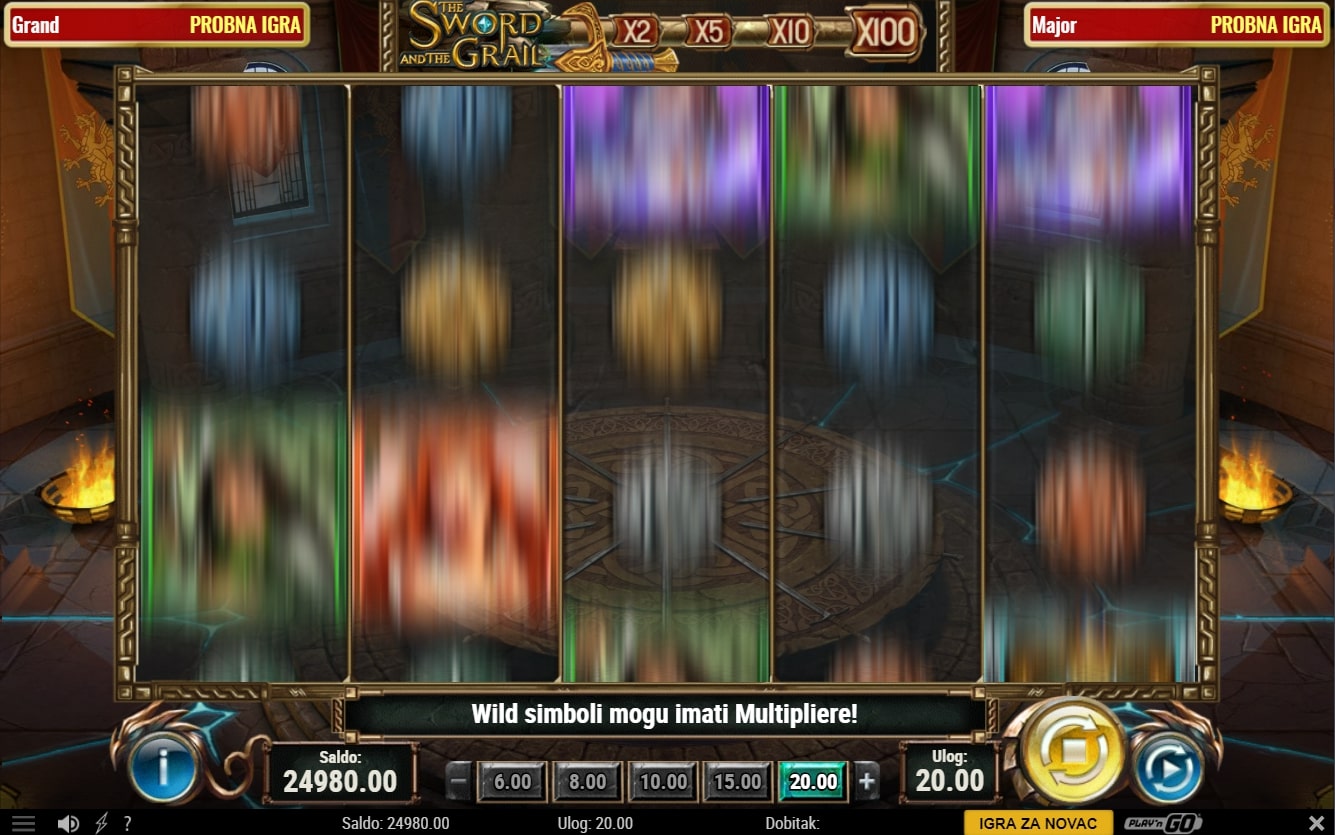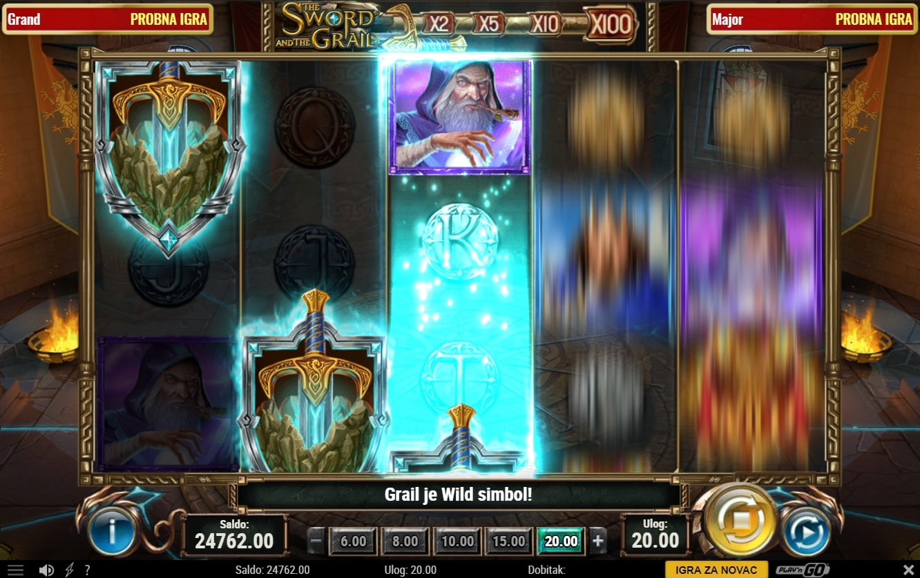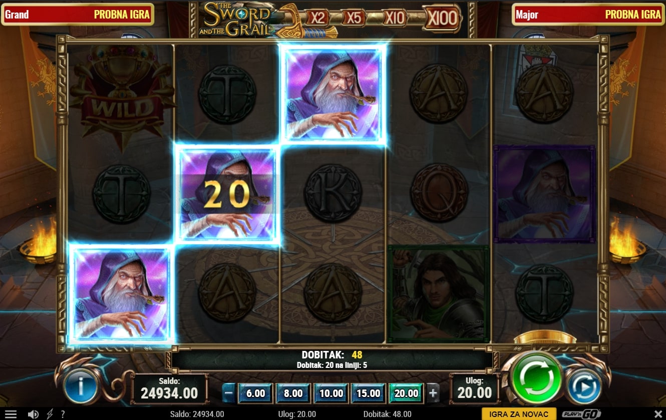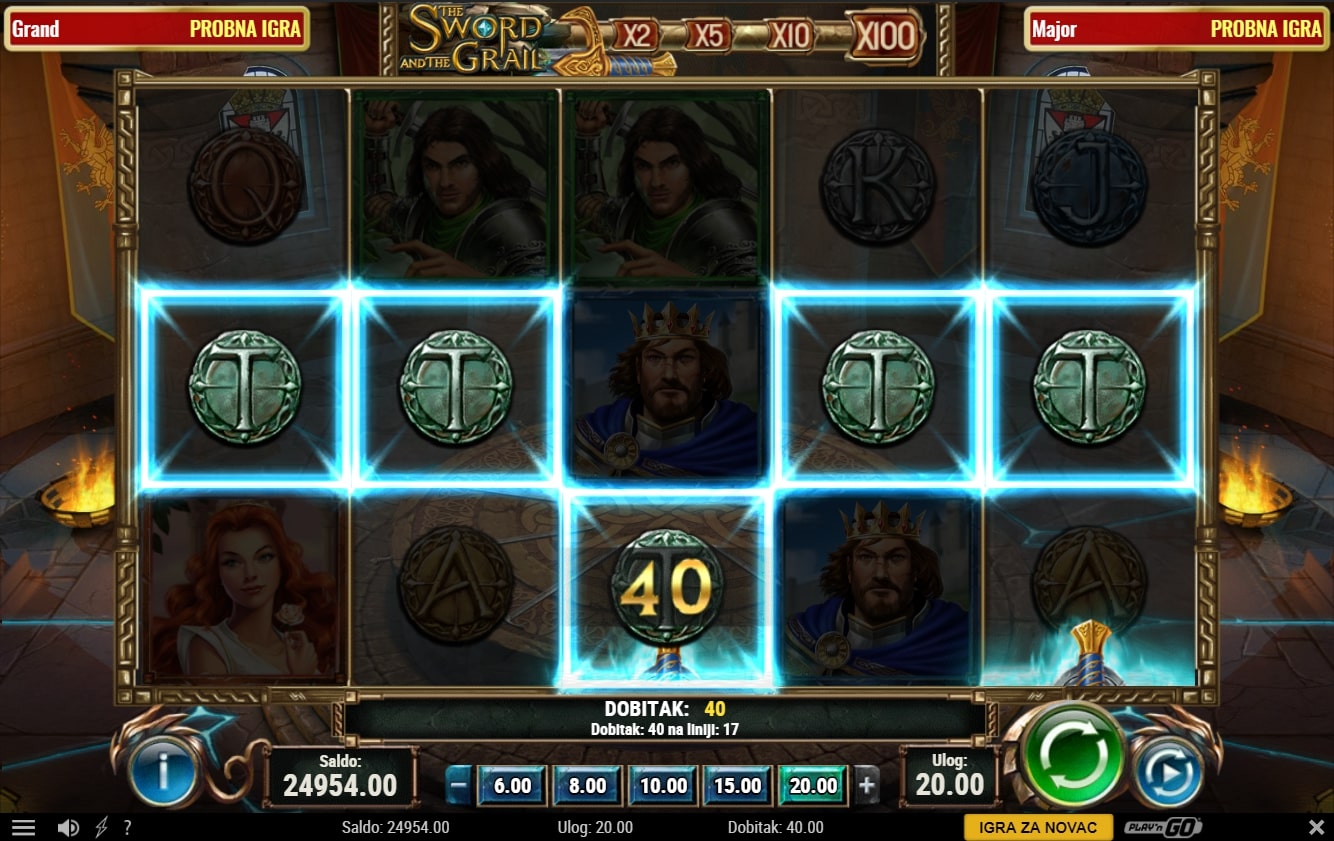 The Sword and The Grail tematska je slot igra koja vodi igrača u svijet tajni i afera starih kraljevstva. Najviše vrijede simboli s ilustracijama dvorjana, a funkcije Wilda i Scattera obnašaju simboli mača i kaleža. Kalež služi kao zamjena za druge simbole, dok mač može dovesti igrača do besplatnih vrtnji. Uz to, igrač može osvojiti 10 000x vrijednosti uloga. Zaigraj casino igru The Sword and The Grail i ostvari vrhunske dobitke!