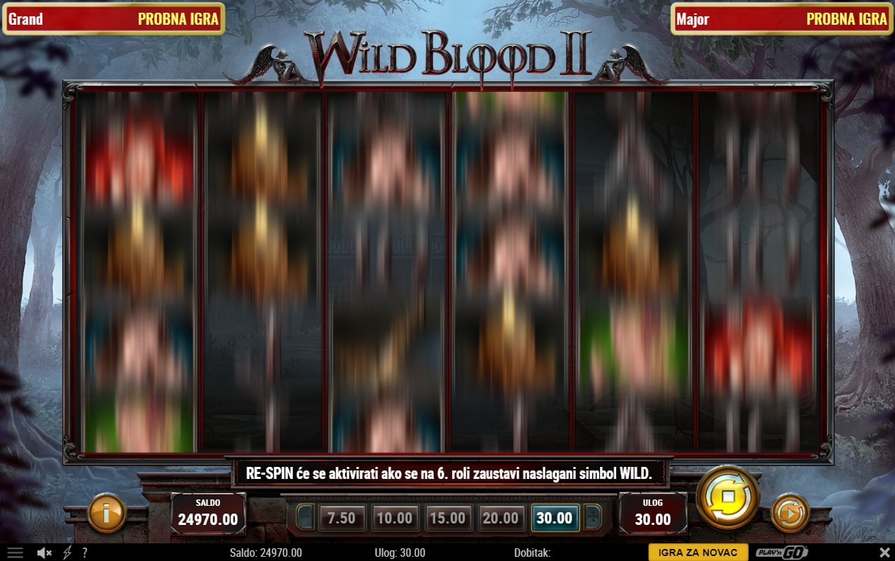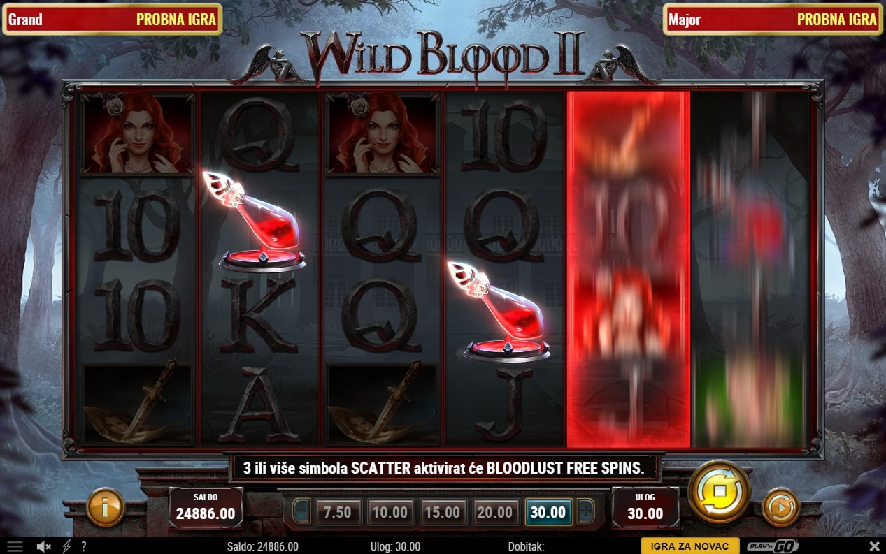 Wild Blood 2 slot je igra horor tematike koja vodi igrača u jezivu potragu za vrhunskim dobicima. Najviše isplaćuju simboli fatalnih žena koje skrivaju svoju strašnu stranu, dok simbol vampira mijenja druge simbole u potrazi za isplatnim linijama. Besplatne vrtnje se aktiviraju pojavom tri ili više simbola bočice krvi, dok Wild na šestom kolutu može aktivirati Respin funkciju. Zaigraj Wild Blood 2 te osvoji mistične nagrade!
