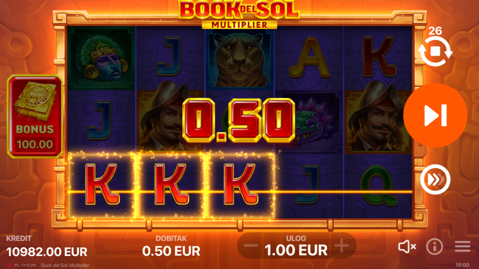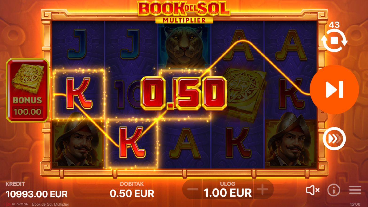 Book del Sol: Multiplier ima RTP od 95.76%, što znači da igra nudi dobre šanse za dobitak. Volatilnost je srednja, što znači da možeš očekivati česte, ali manje dobitke. Igra je savršena za igrače koji vole balans između rizika i nagrada. Progresivni množitelji tijekom besplatnih vrtnji dodatno povećavaju šanse za velike dobitke!