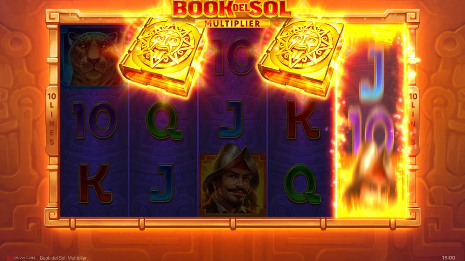Gameplay u Book del Sol: Multiplier je dinamičan i jednostavan. S pet bubnjeva i deset fiksnih linija, svaka dobitna kombinacija plaća se slijeva na desno. Scatter simboli aktiviraju besplatne vrtnje, a skupljanje simbola Sunca tijekom besplatnih vrtnji povećava vrijednost množitelja, postupno od x1 na x2, x3 i x5. Specijalni proširujući simboli ispunjavaju cijeli bubanj i tvore dobitne kombinacije neovisno o svom položaju.