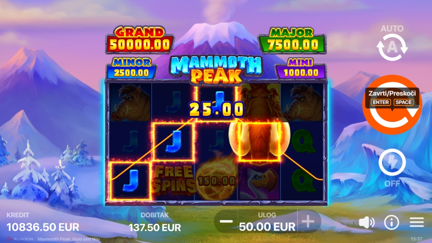 2. Postoji li jackpot u Mammoth Peak Hold and Win?