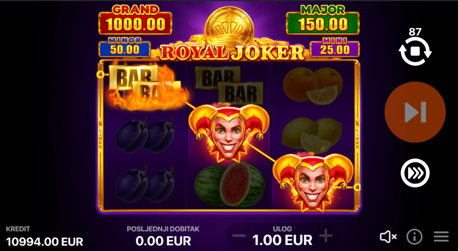 3. Mogu li igrati Royal Joker Hold and Win besplatno?