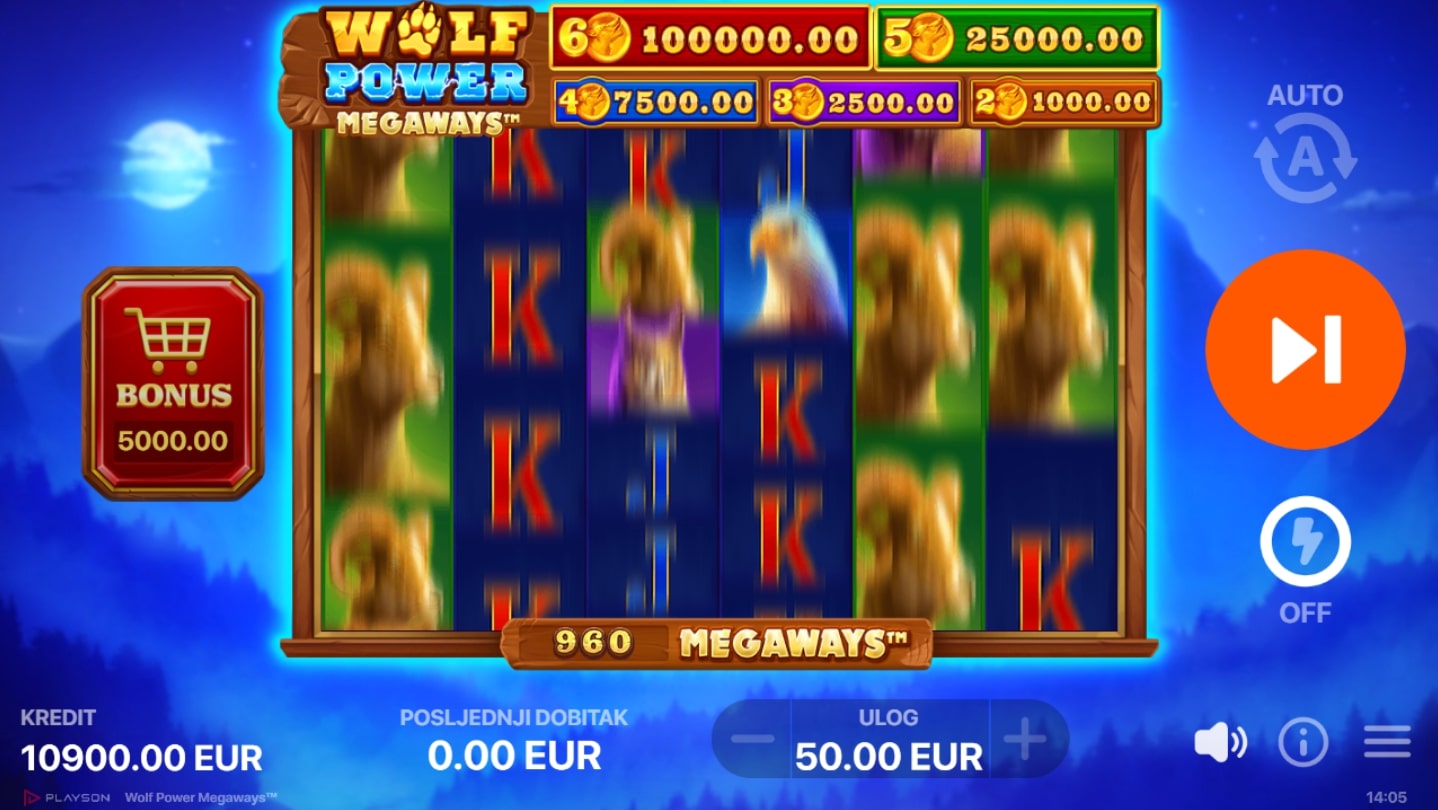 Wolf Power Megaways slot je igra koja vodi igraču u pustolovinu mističnim šumama i tajanstvenim gorjima. Simboli su inspirirani životinjskim svijetom, a najzanimljviji su simbol vuka koji mijenja druge simbole te simbol planinskog vrha koji igraču može osigurati putovanje u svijet besplatnih vrtnji. Postoji mogućnost i posebnih Bonus igara koje nude dodatne prilike za nagrade s Boosterom i množiteljem bubnja. Bonus igre također je moguće kupiti za 100 ukupnih uloga. Zaigraj Wolf Power Megaways te osvoji misteriozne nagrade!