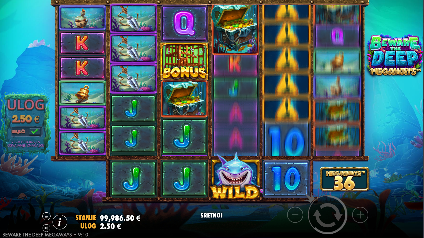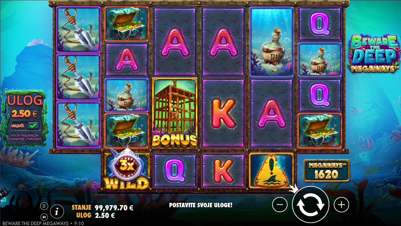 4. Koji su minimalni i maksimalni ulozi u igri Beware The Deep Megaways?
