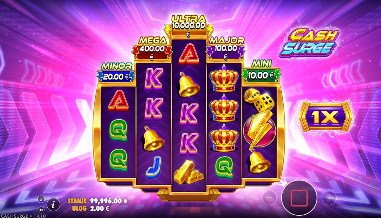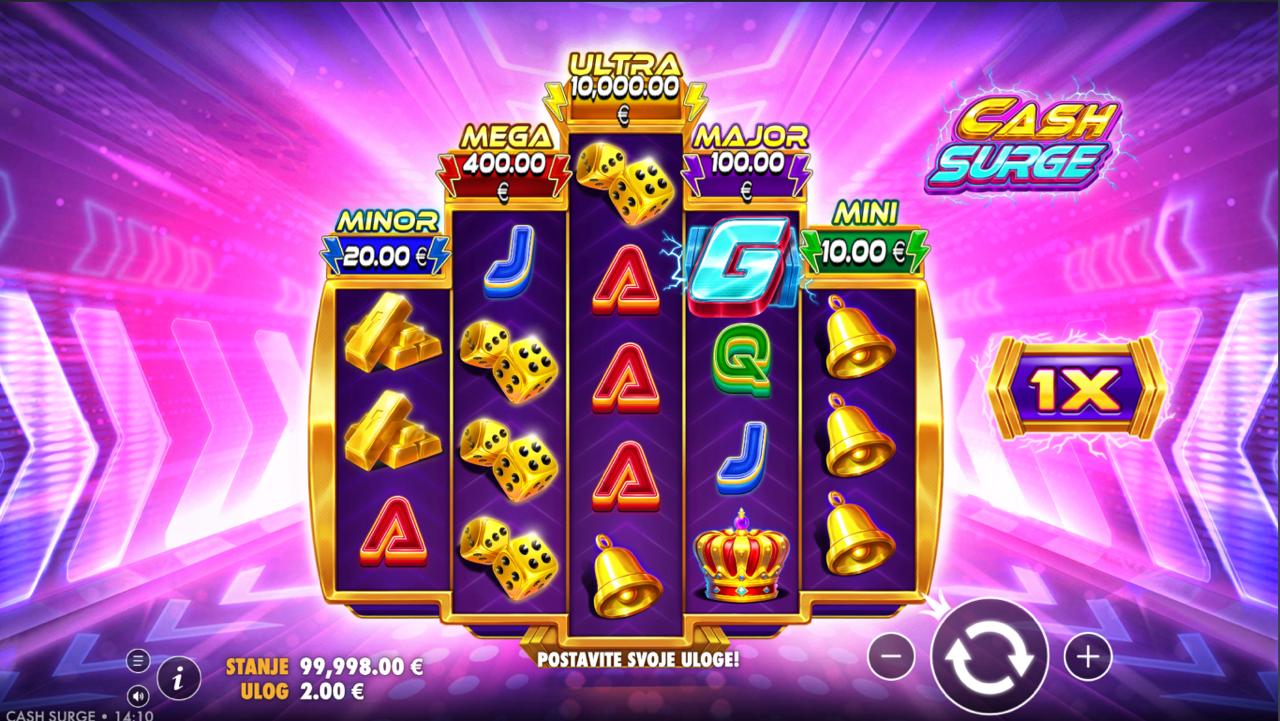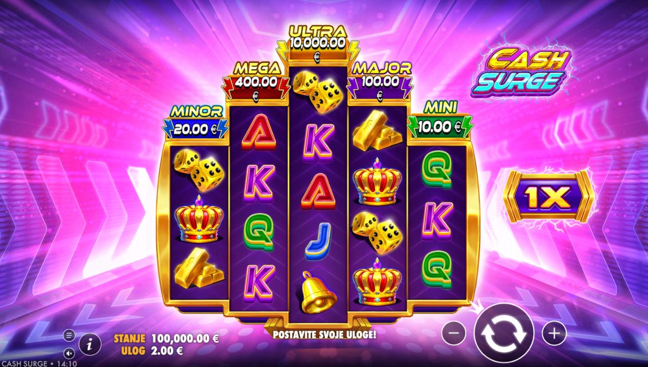 Uroni u svijet električne energije i brzih dobitaka uz Cash Surge, slot igru providera Pragmatic Play koja donosi modernu neon atmosferu i dinamičan gameplay. Vizualno atraktivna igra kombinira klasične simbole s modernim efektima i uzbudljivim bonus značajkama. Iako igra ne uključuje jackpot, Cash Surge nudi velik potencijal dobitaka zahvaljujući multiplikatorima i posebnim funkcijama koje povećavaju vrijednost nagrada tijekom igre.