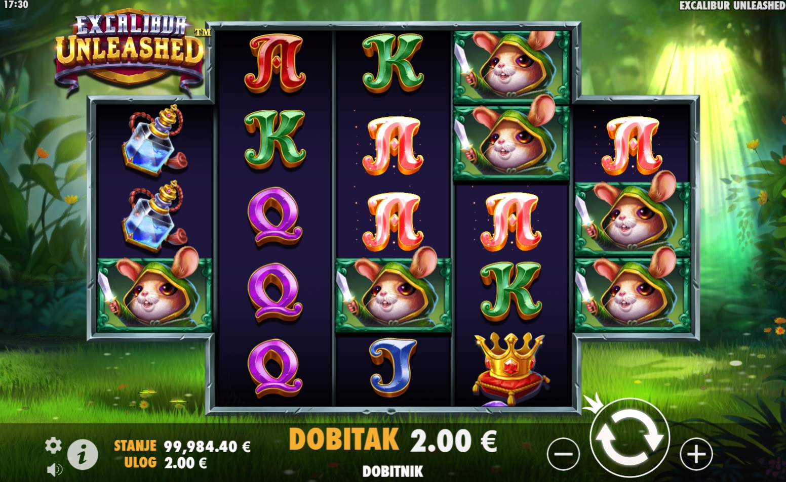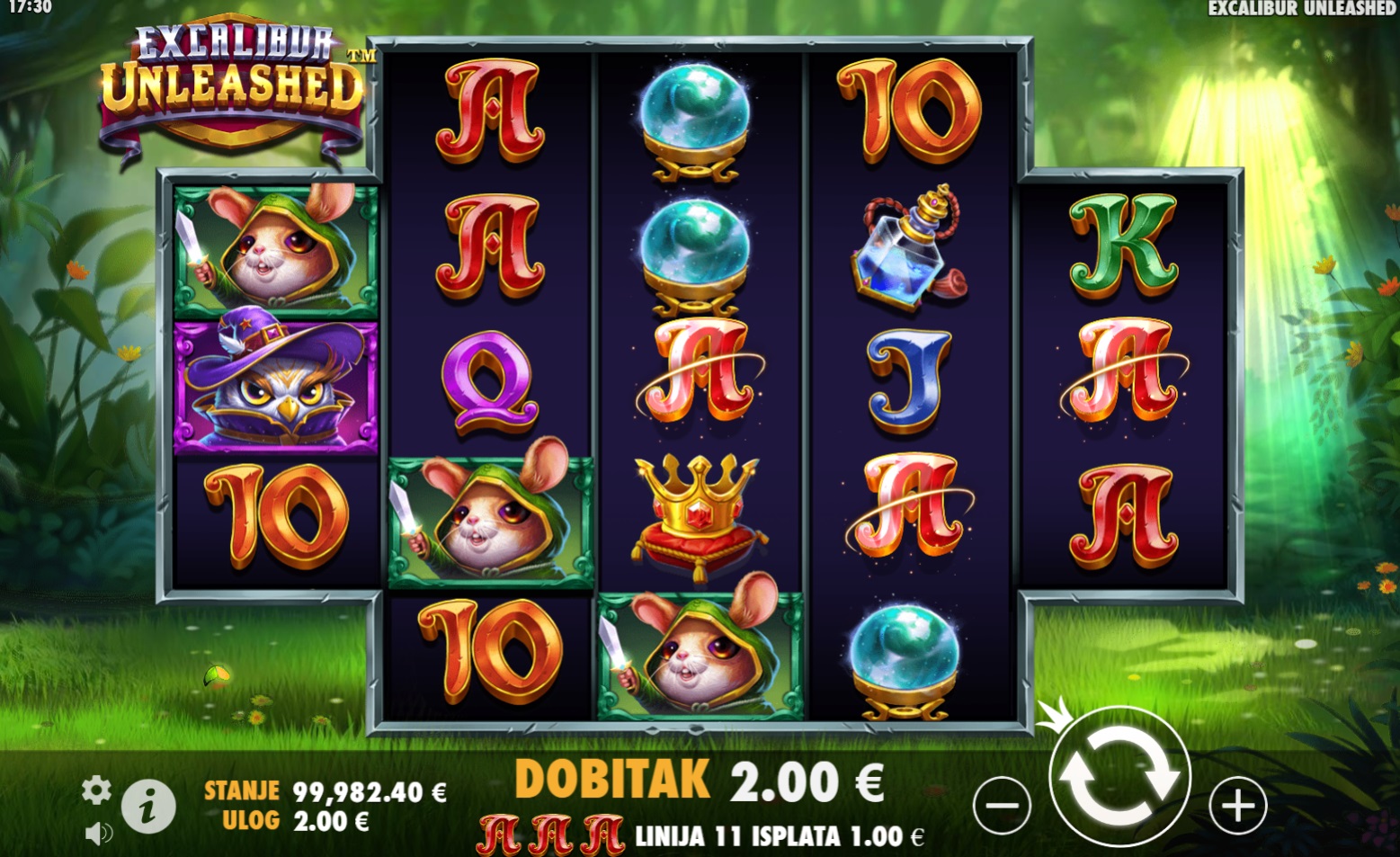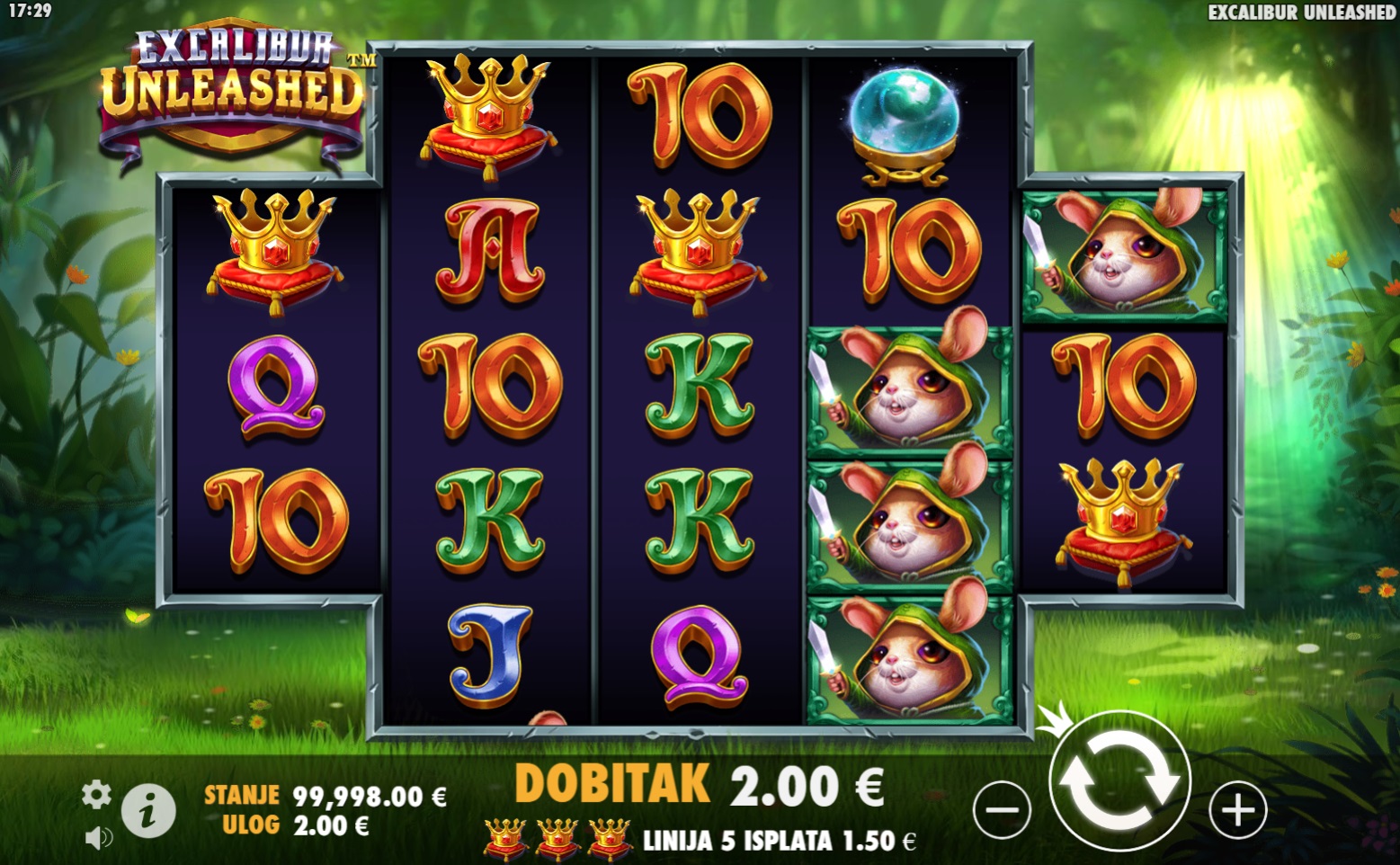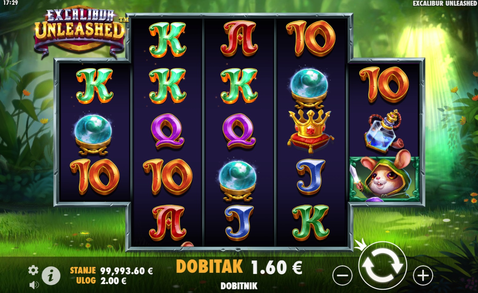U igri Excalibur Unleashed™, bit ćeš prebačen u magični srednjovjekovni svijet, gdje te čekaju uzbudljive nagrade i spektakularni bonusi. Simboli se isplaćuju s obje strane, a prošireni Wild simboli donose još veće šanse za dobitak. S 5 bubnjeva i mogućnošću besplatnih vrtnji, ova igra nudi nezaboravno iskustvo uz dodatne množitelje koji mogu uvećati tvoj dobitak i do 20 puta! Pokušaj aktivirati rundu besplatnih vrtnji i uživaj u svim čarima koje Excalibur Unleashed™ nudi!