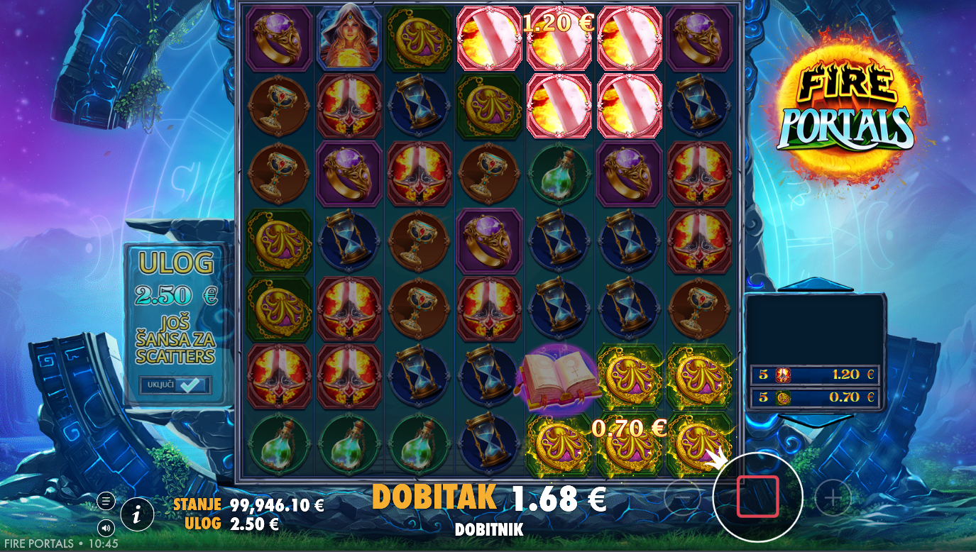 4. Koji su minimalni i maksimalni ulozi u igri Fire Portals?
