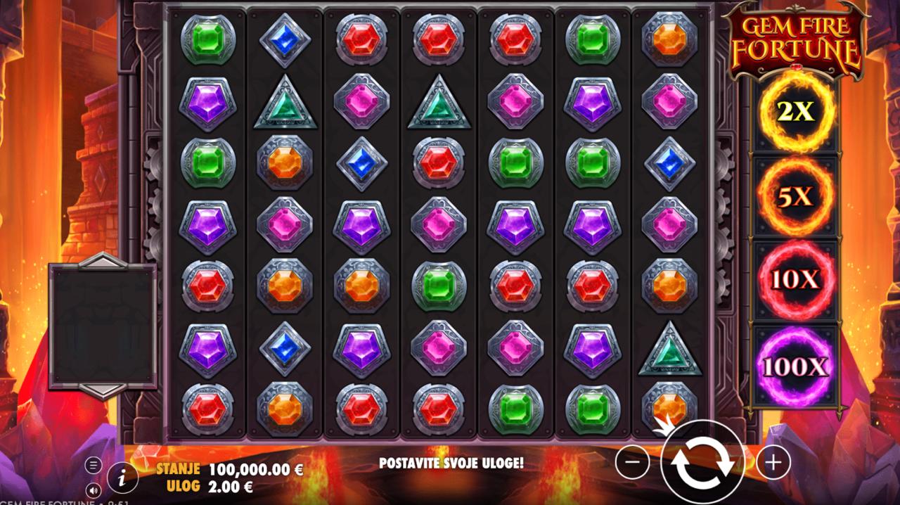 Pripremi se na blistavu avanturu s Gem Fire Fortune, slot igrom providera Pragmatic Play koja kombinira sjajne dragulje s uzbudljivim gameplayem i dinamičnim spinovima. Igra vizualno ističe šarene dragulje i svjetlucave simbole koji svaki okret role čine uzbudljivim i atraktivnim. Bez jackpot značajke, fokus je na stalnim prilikama za dobitke kroz osnovnu igru, nagrađujuće kombinacije i atraktivne isplate. Ako voliš igre s jasno izraženim vizualima i jednostavnom, ali napetom mehanikom — Gem Fire Fortune je odličan izbor!