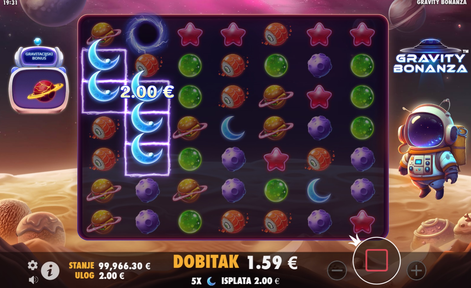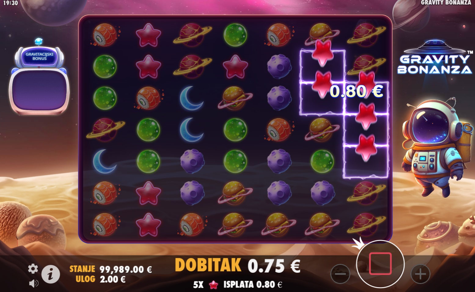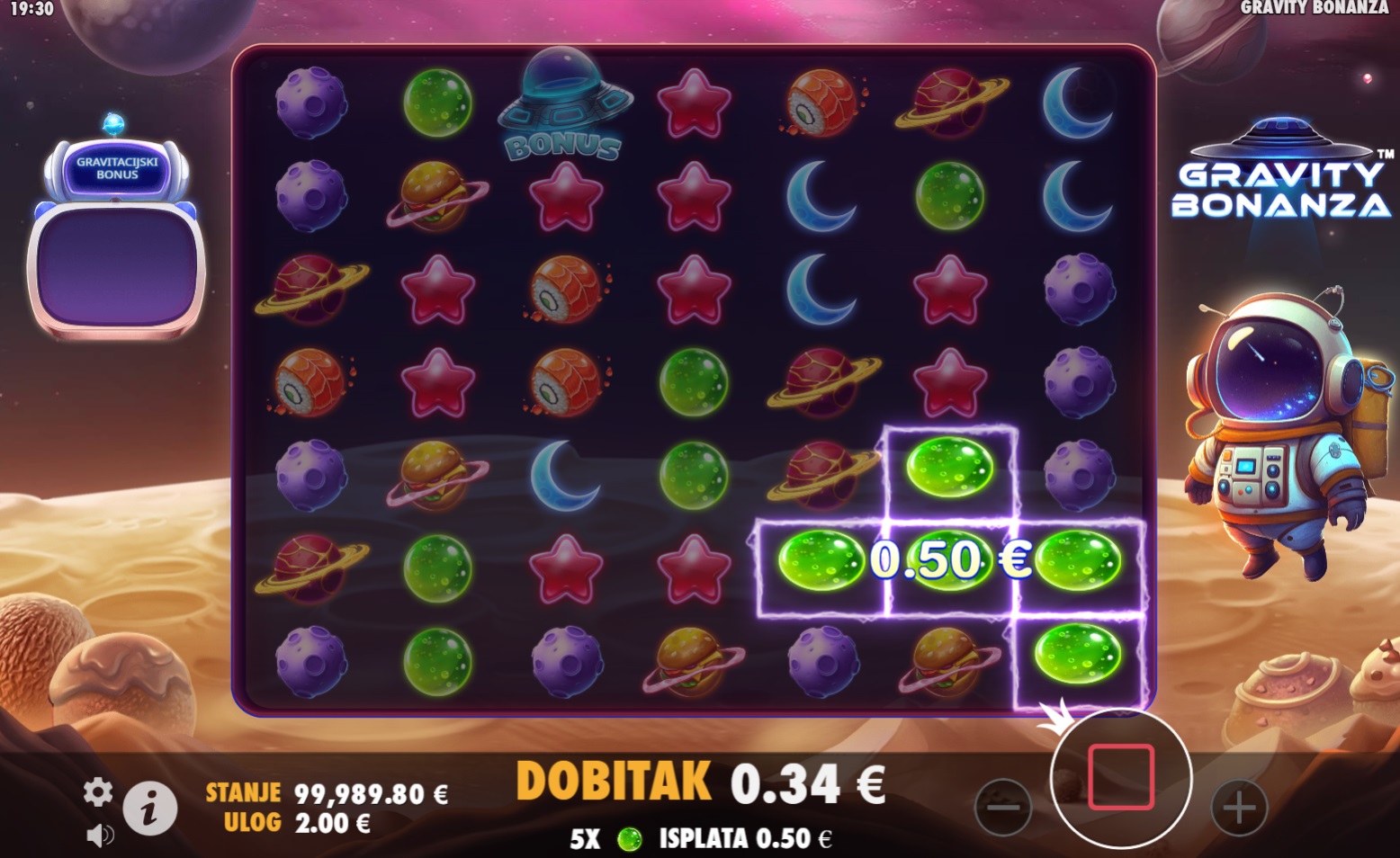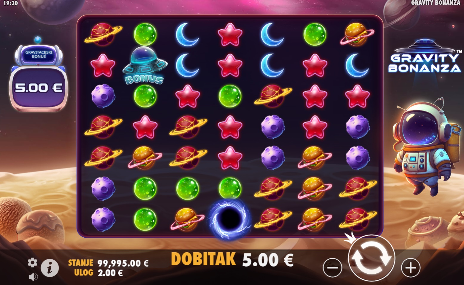 Gravity Bonanza ima RTP od 96.09%, što pruža solidne šanse za dobitak. Volatilnost je srednja, što znači da možeš očekivati česte, ali manje dobitke. Ova igra je savršena za igrače koji vole balans između rizika i nagrada.