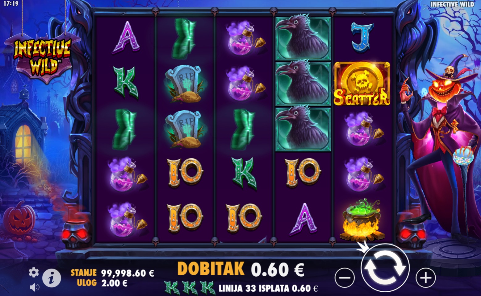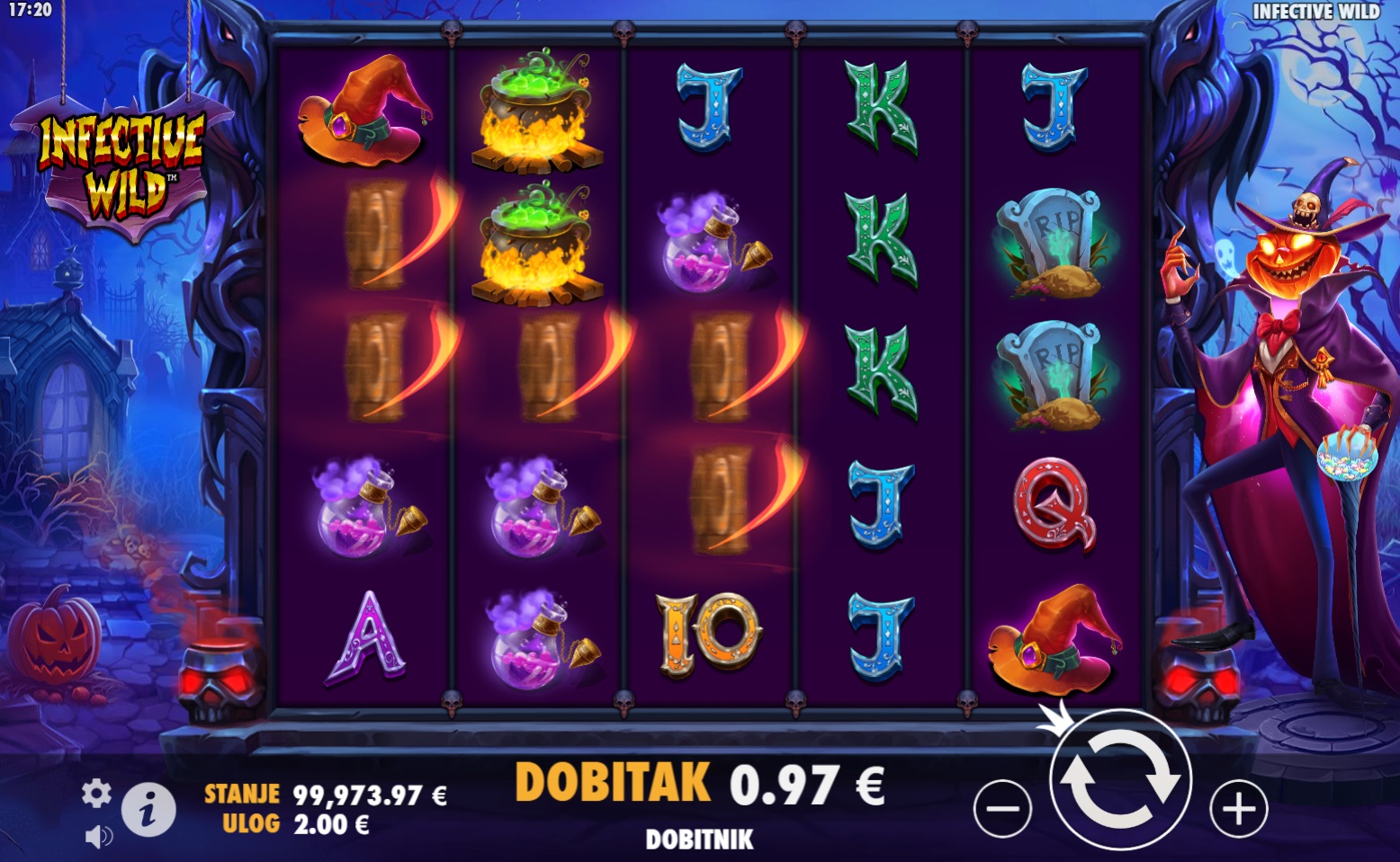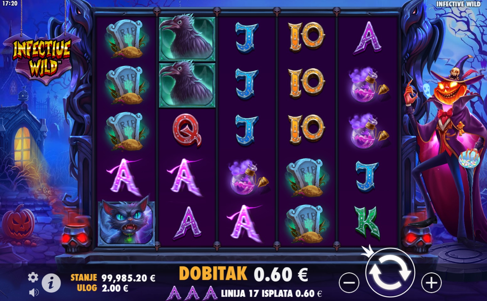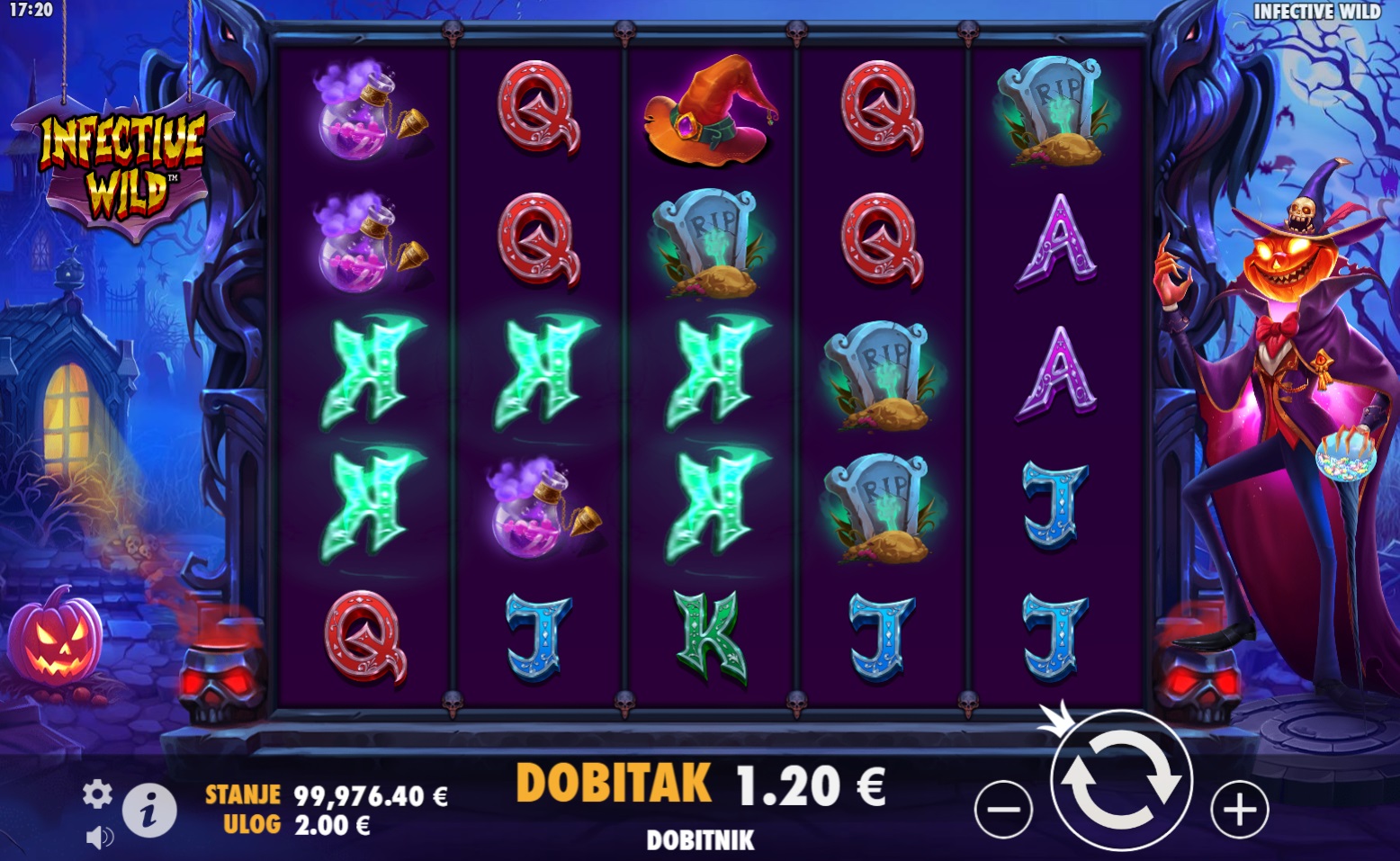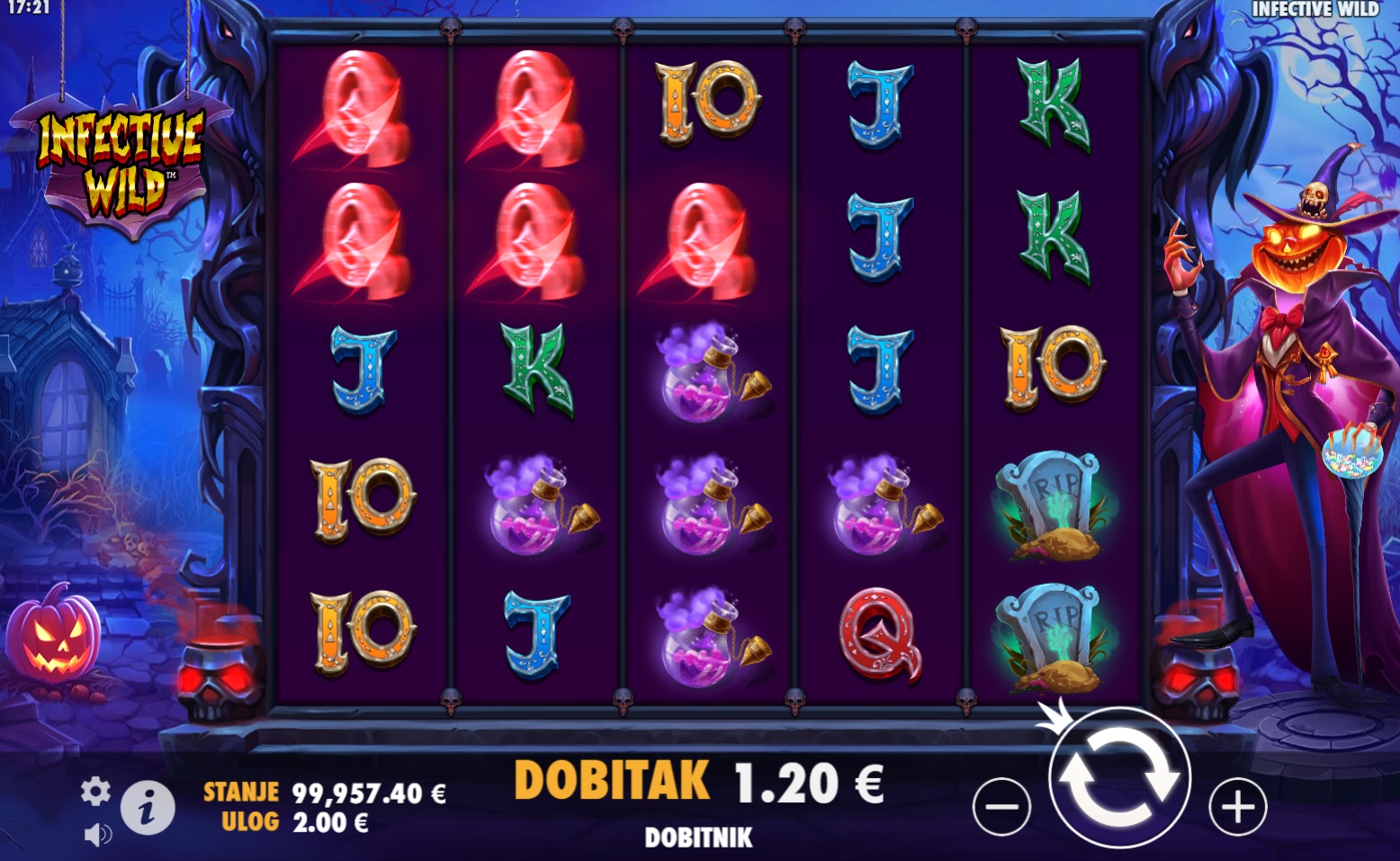 Infective Wild je uzbudljiva video slot igra koja donosi inovativne mehanike i mogućnosti za velike dobitke. S pet bubnjeva i nizom zaraznih wild simbola, ova igra pruža napetu i dinamičnu atmosferu. Posebne značajke igre, poput besplatnih vrtnji i zaraznih wild simbola, dodatno pojačavaju uzbuđenje. Scatter simboli omogućuju besplatne vrtnje, dok wild simboli zaražuju susjedne simbole, pretvarajući ih u dodatne wild simbole za još veće šanse za dobitak.
