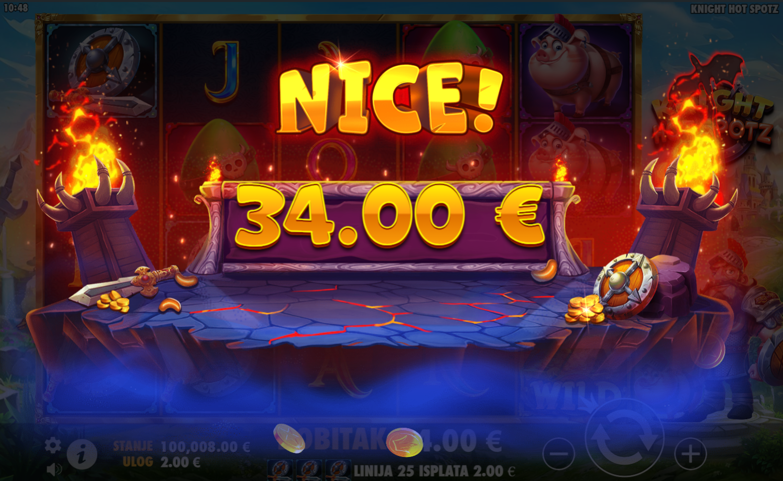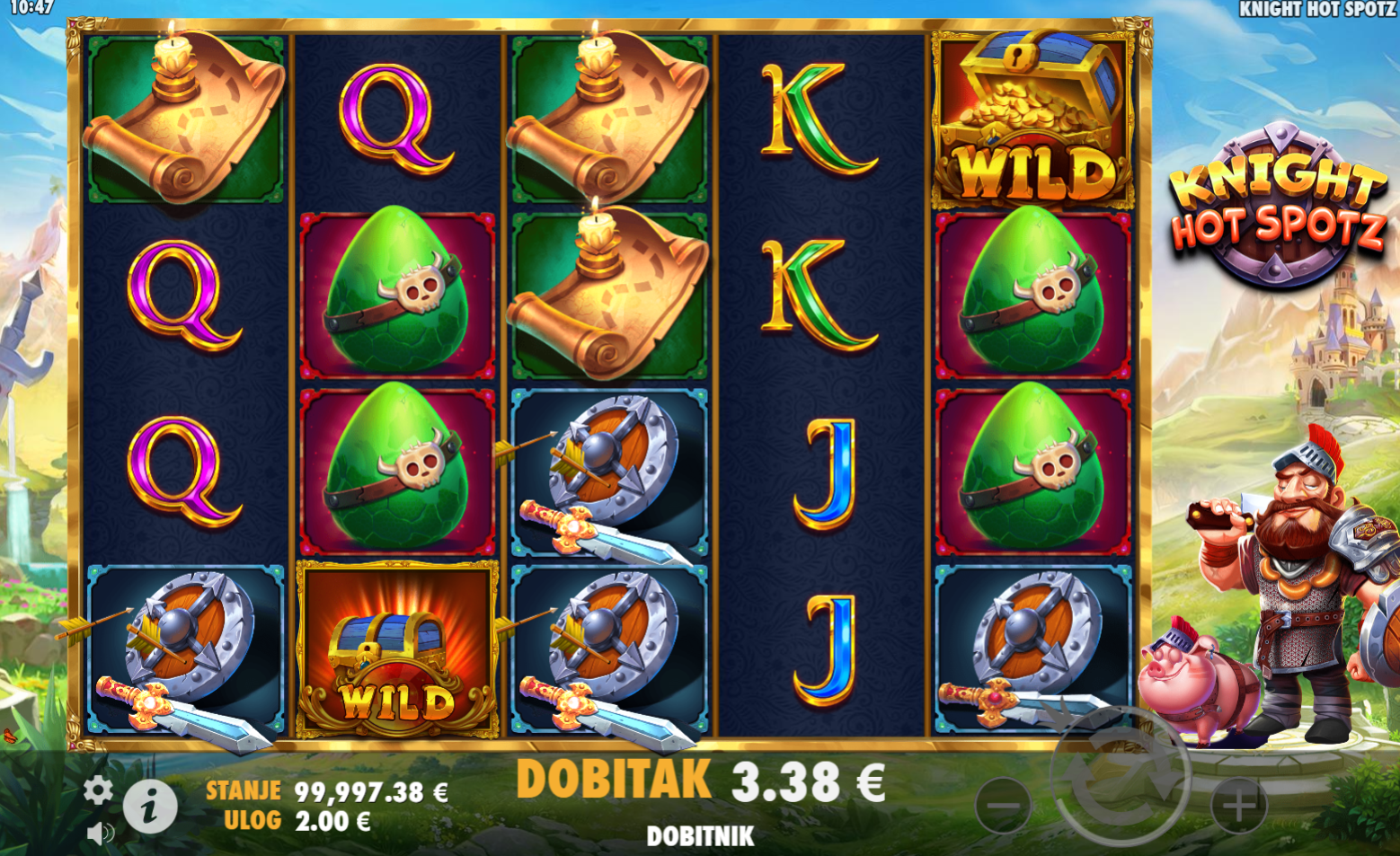 Wild simboli pomažu u slaganju dobitnih kombinacija, a sve kulminira s maksimalnim dobitkom od 2.000x. Uz moderan dizajn, brzu igru i uzbudljive bonuse, Knight Hot Spotz™ pruža pravu dozu adrenalina.