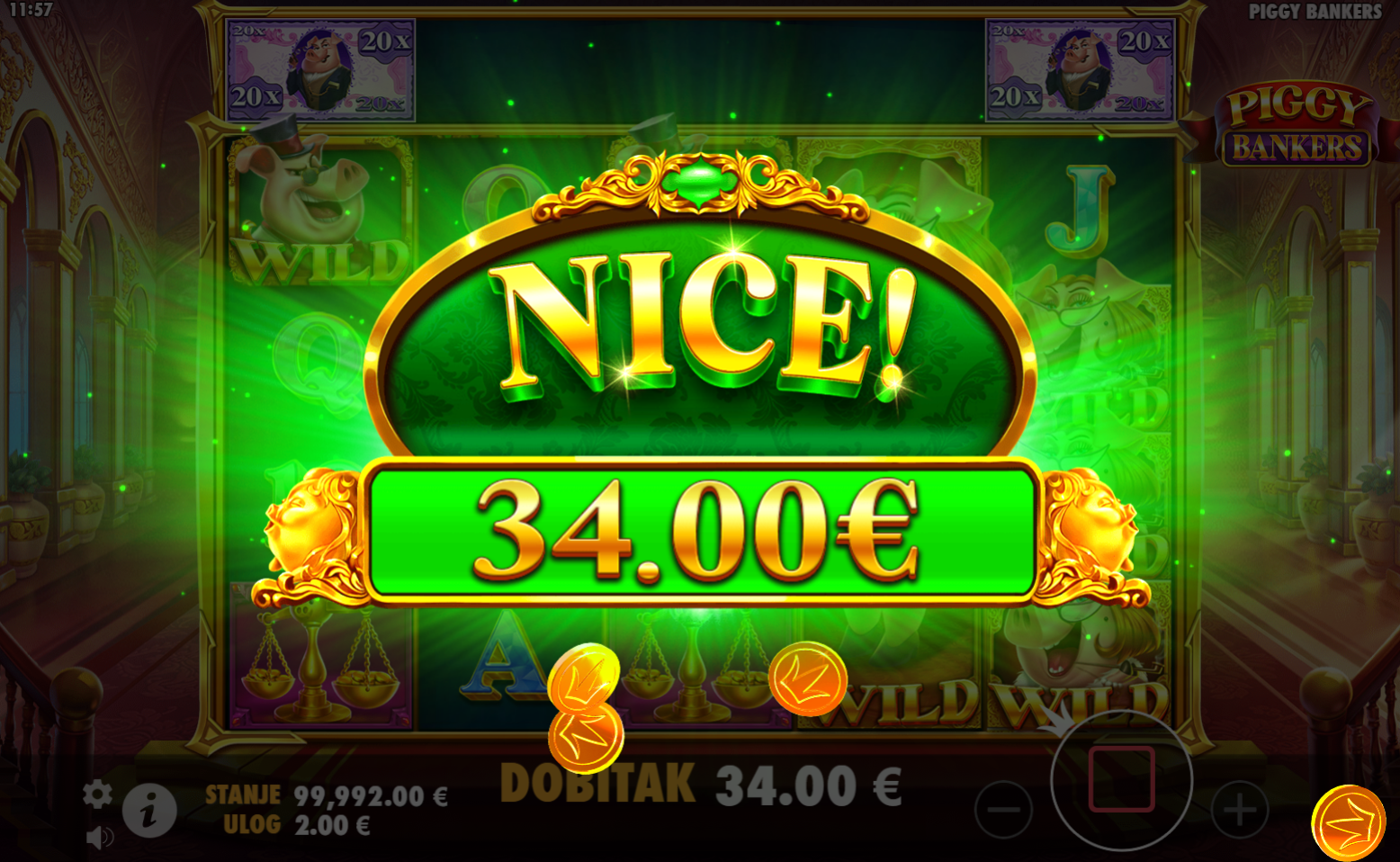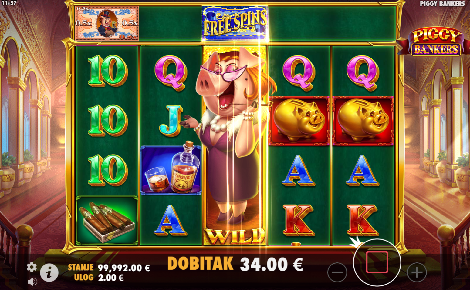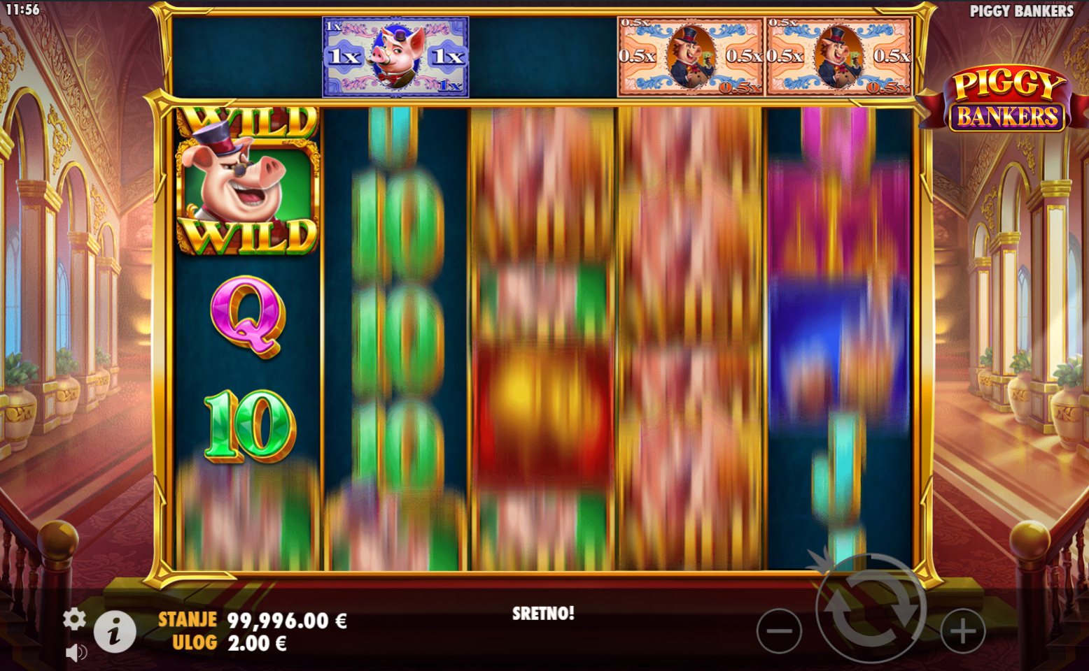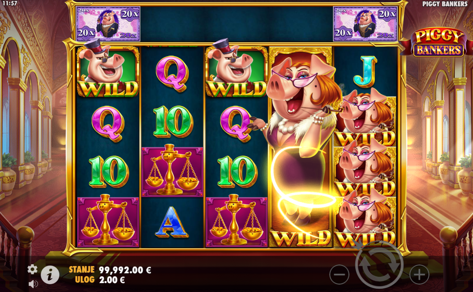 Wild prasići – bankar i bankarica! Svaka vrtnja je nepredvidiva i zabavna, a najviše možeš osvojiti čak 10,000x uloga!