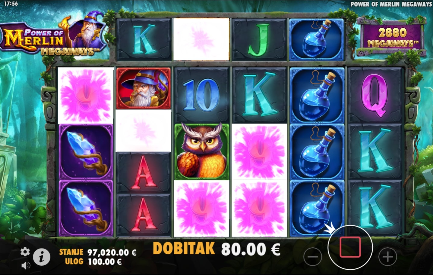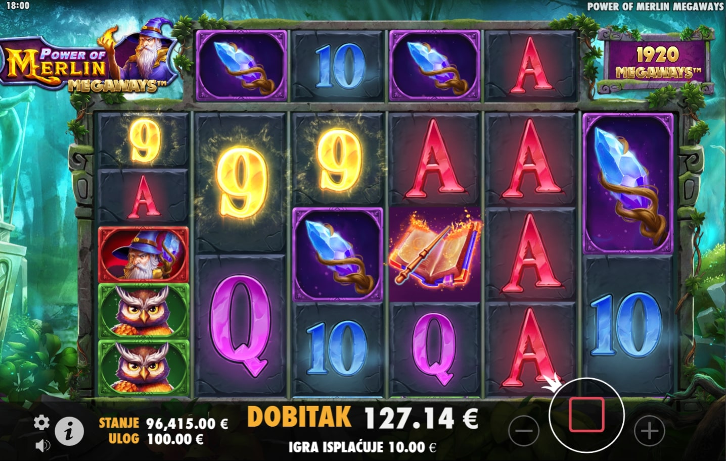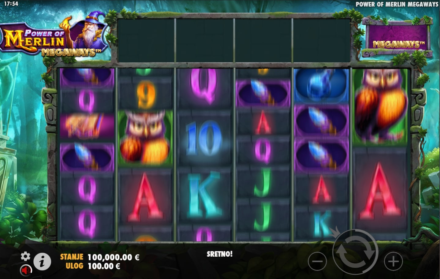 Power of Merlin Megaways slot je igra fantastične tematike koja vodi igrača u čarobnu šumu koja nudi super nagrade. Najviše isplaćuju simboli čarobnjaka, sove, čarobnog štapa i napitka, a igra sadrži i posebnu značajku padanja, odnosno dobitni simboli se isplaćuju i nestaju te na njihovo mjesto padaju novi sve dok ne ponestane dobitnih kombinacija. Besplatne vrtnje moguće je ostvariti pojavom 4 ili više knjige, dok Wild simbol služi kao zamjena za druge simbole. Zaigraj Power of Merlin Megaways za mistične nagrade!