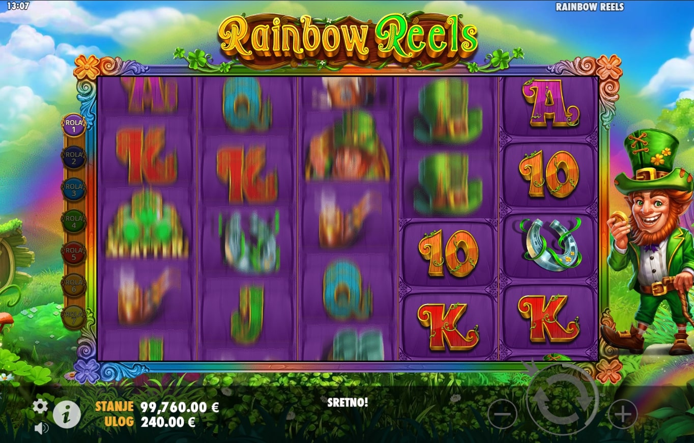 Rainbow Reels tematska je slot igra koja vodi igrača pod dugu u potragu za zlatom i vrhunskim dobicima. Najveće dobitke omogućuju simboli irskog vilenjaka, šešira, cipela i potkove, dok igra uz to sadrži simbole duge i djeteline s četiri lista koji vode igrača u svijet besplatnih vrtnji, odnosno služe kao zamjena za druge simbole. Svi položaji na ploči imaju sedam slojeva te nakon svakog dobitka isplatni simboli nestaju, a na njihovo mjesto dolaze novi sve dok ne ponestane dobitnih kombinacija. Zaigraj Rainbow Reels te osvoji fantastične nagrade!