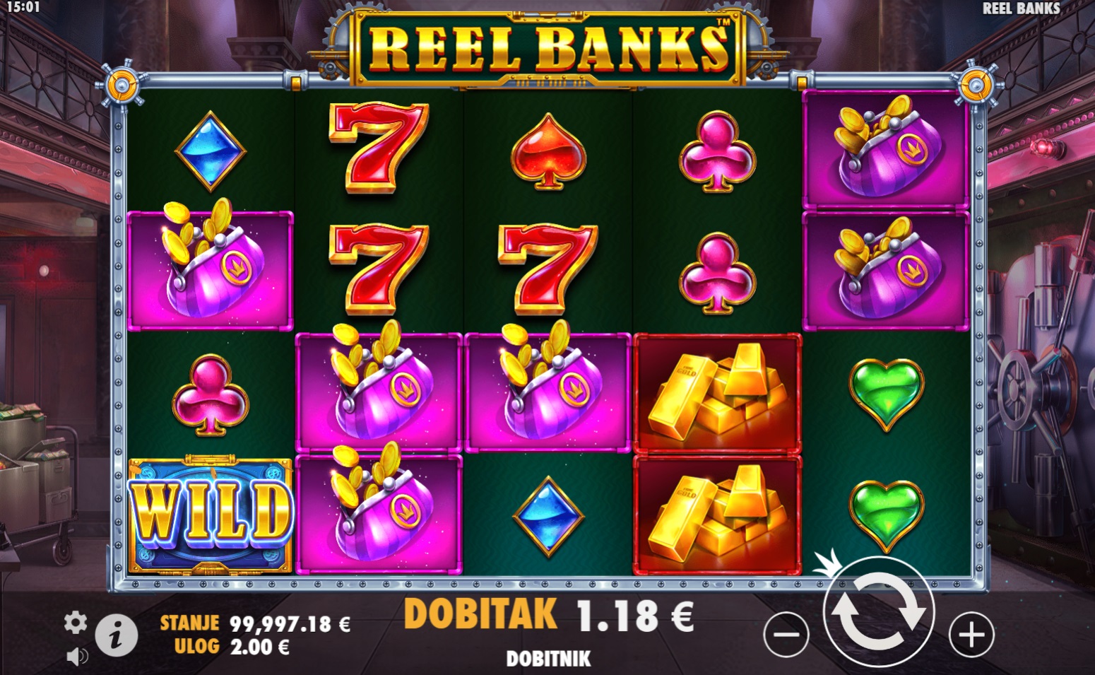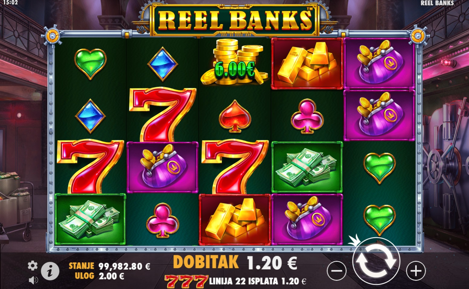Reel Banks™ ima RTP (Povrat igraču) od 96.04%, što označava solidne šanse za dobitak tijekom igranja. Volatilnost je srednja, što znači da možeš očekivati česte, ali manje dobitke. Ova igra je savršena za igrače koji vole balans između rizika i nagrada.