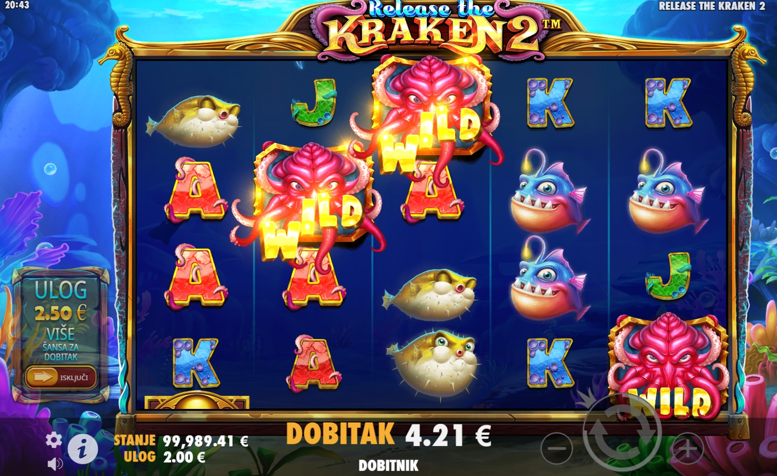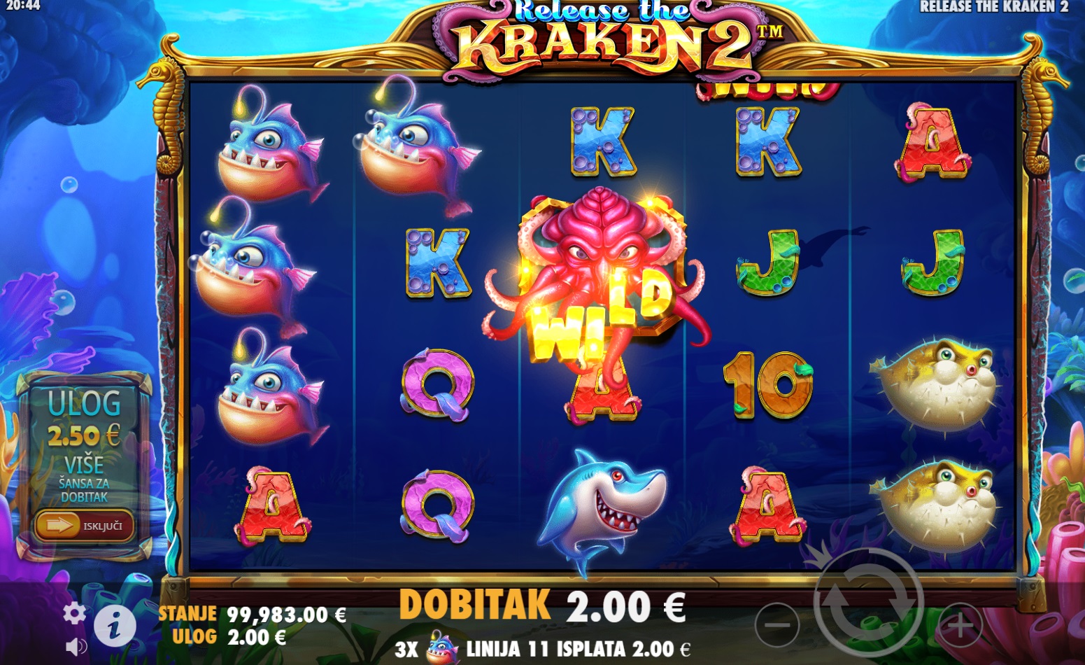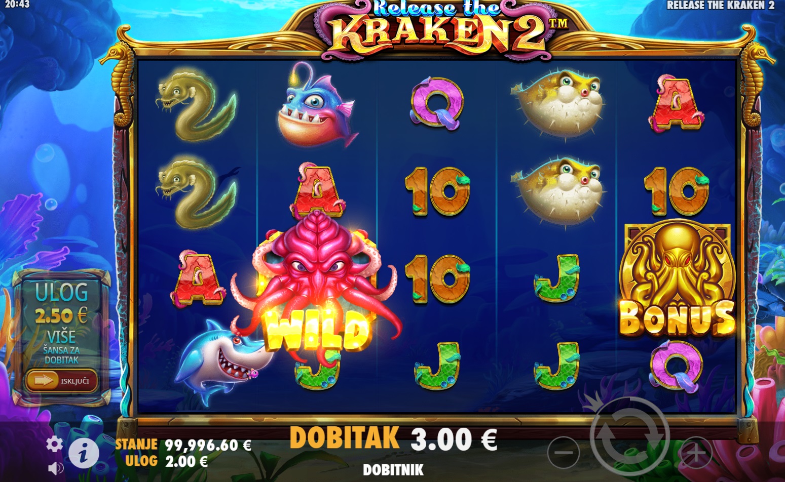 Release the Kraken 2™ ima RTP od 96.03%, što znači da igra nudi dobre šanse za dobitak. Volatilnost je srednja, što znači da možeš očekivati česte, ali manje dobitke. Igra je savršena za igrače koji vole balans između rizika i nagrada!