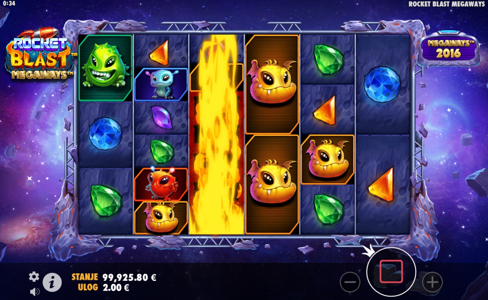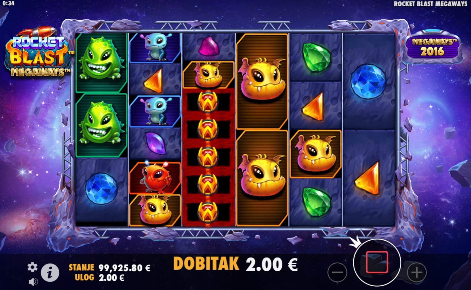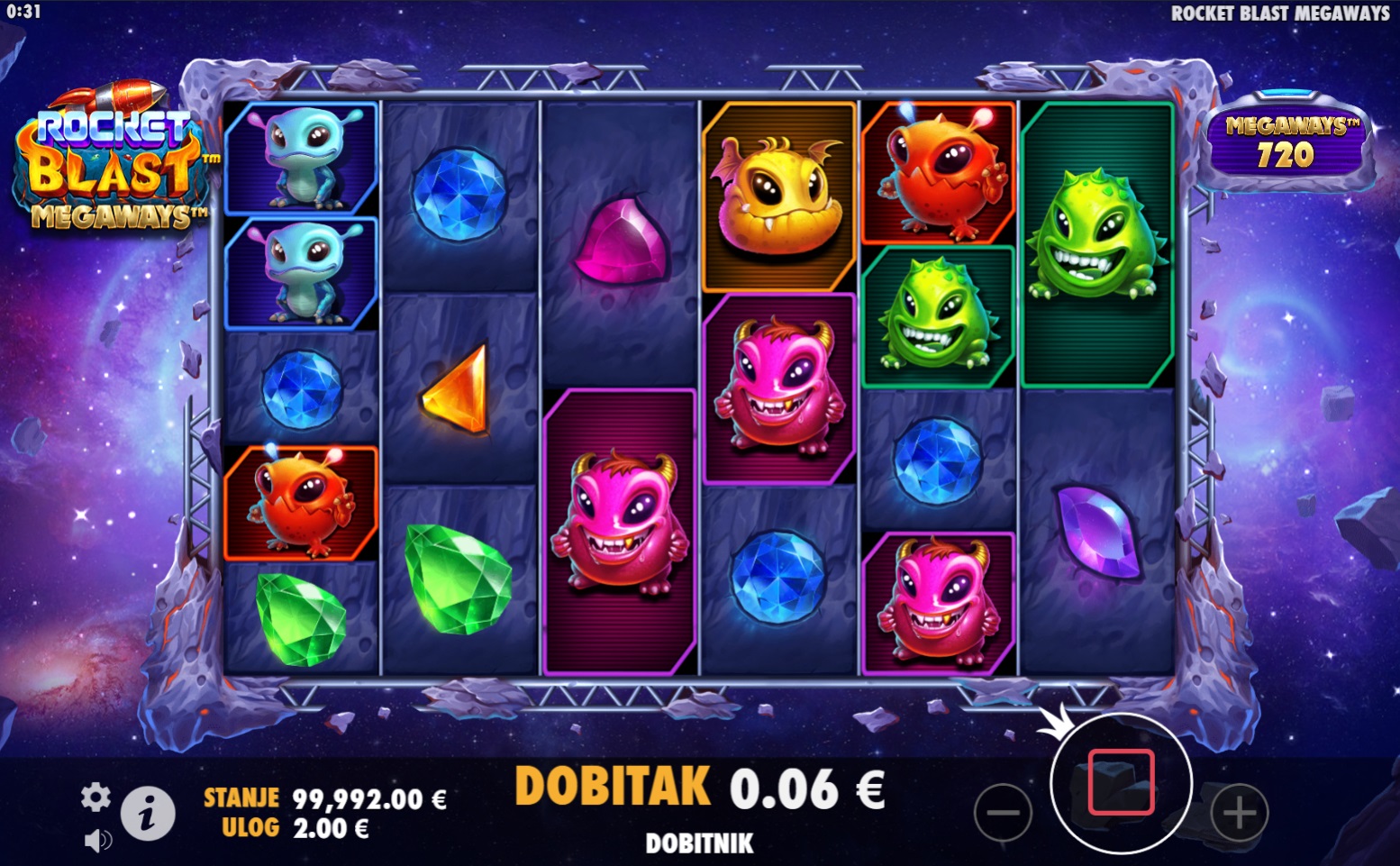 Rocket Blast Megaways™ nudi uzbudljivu avanturu s do 117649 mogućih načina za dobitak. S padanjem simbola i jedinstvenim značajkama poput Raketa koje pretvaraju simbole u Wild, svaka vrtnja donosi priliku za velike nagrade. Wild simboli se pojavljuju na valjcima 2-6, mijenjajući sve osim Scatter simbola, a padanje simbola omogućuje dodatne dobitke dok god postoje dobitne kombinacije. Igra pruža dinamičan gameplay i puno uzbuđenja uz mogućnost osvajanja besplatnih vrtnji, gdje se dobitak može višestruko povećati.