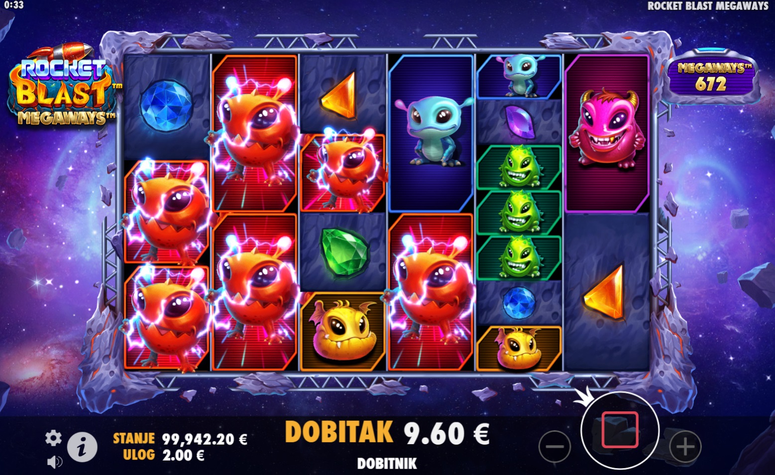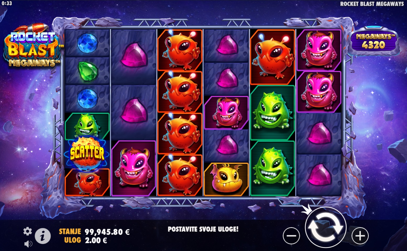 Rocket Blast Megaways™ ima RTP od 96,01% i visoku volatilnost, što znači da su dobitci manje učestali, ali kada se pojave, mogu biti vrlo značajni. Značajka Besplatnih Vrtnji nudi višestruke mogućnosti za povećanje dobitaka zahvaljujući rastućem množitelju koji se povećava nakon svakog pada simbola, nudeći potencijal za velike isplate u kratkom vremenu.