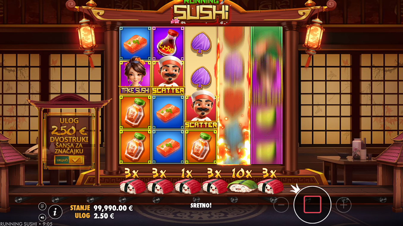 4. Koji su minimalni i maksimalni ulozi u igri Running Sushi?