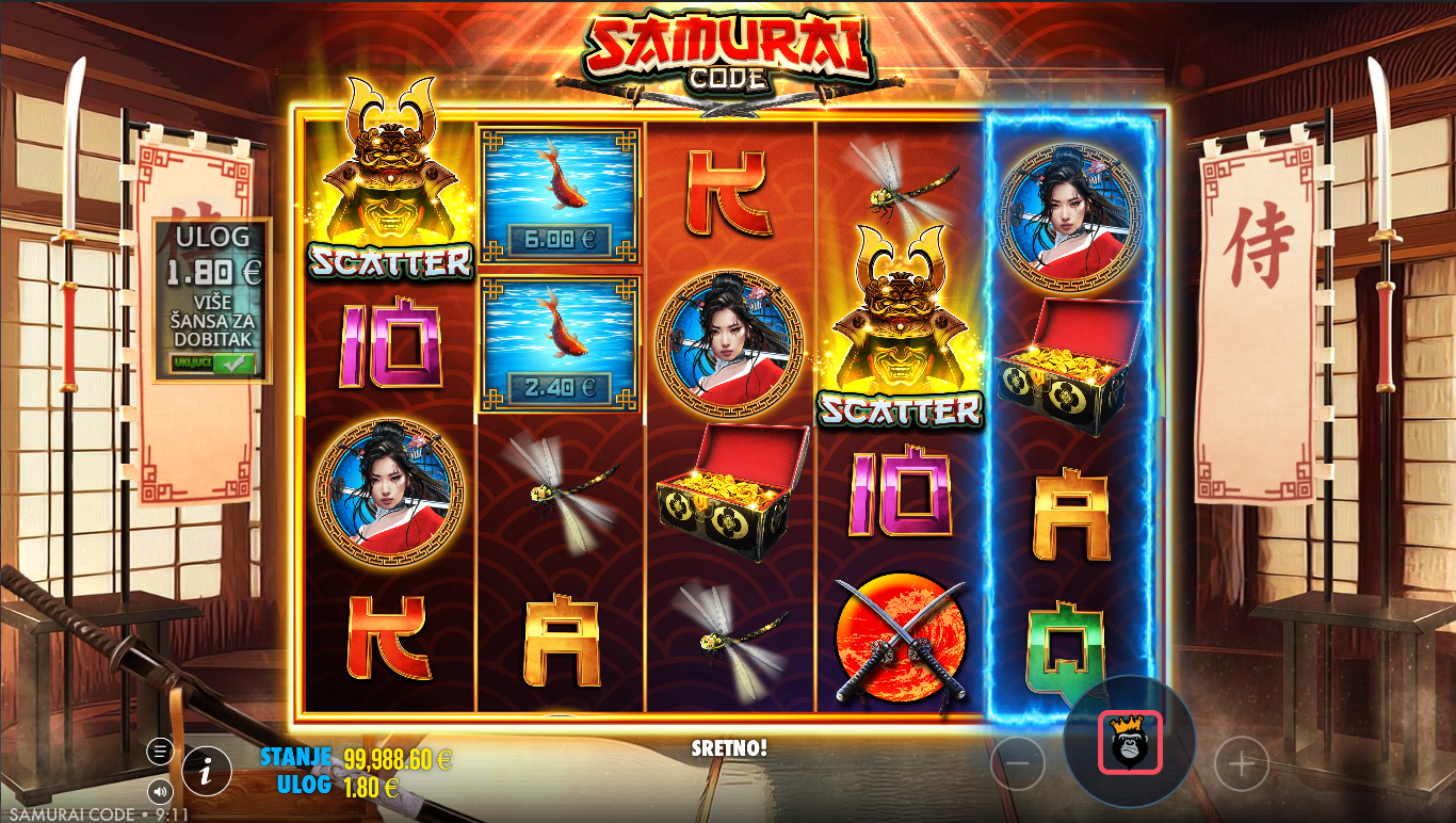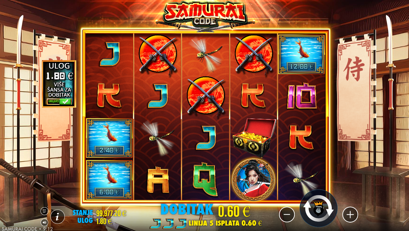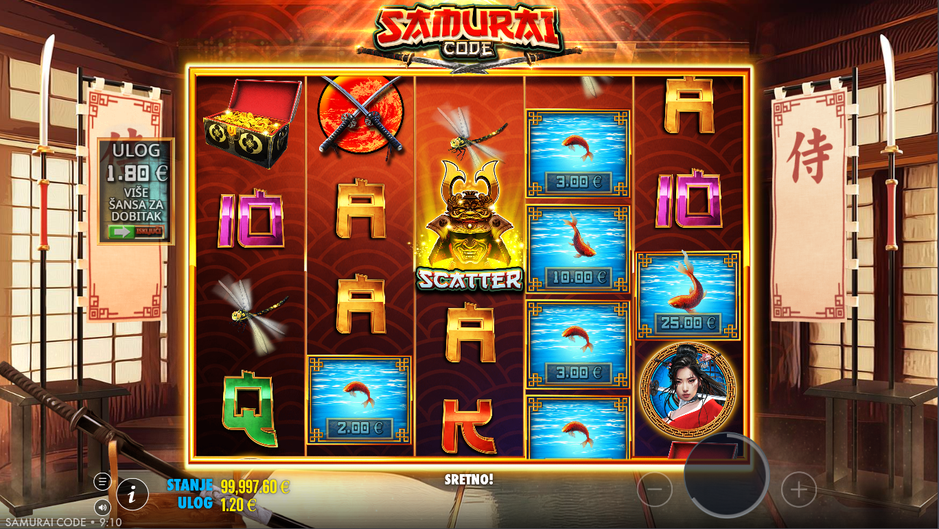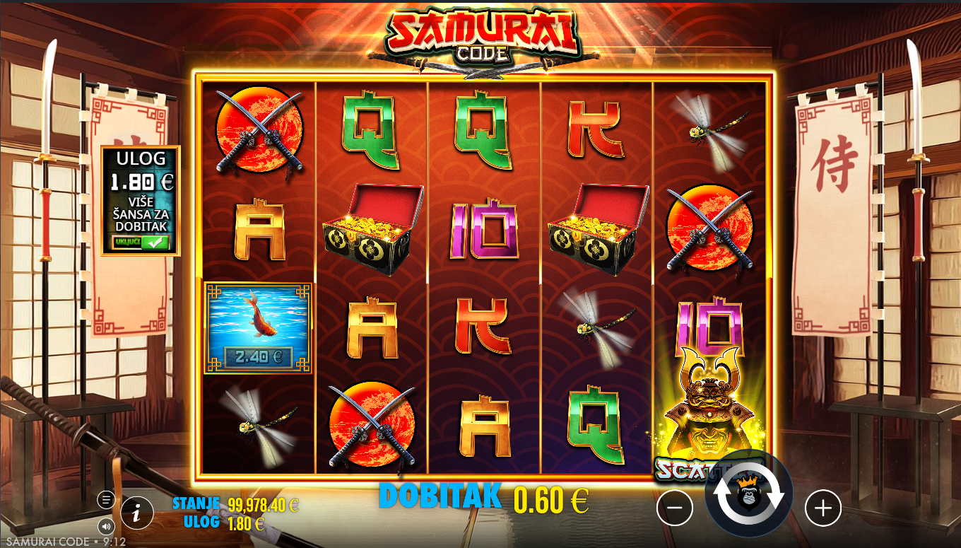 Odaberi ulog, zavrti valjke i ciljaj premium simbole poput samuraja, kaciga, maski i oružja. Posebni simboli mogu aktivirati bonus runde, free spins, multiplikatore ili posebne rez efekte koji pojačavaju dobitke. Gameplay je jednostavan, ali ispunjen napetošću jer posebne značajke mogu iznenada preokrenuti tok igre. Kroz bonus runde, igra postaje još dramatičnija i može isporučiti ogromne isplate. Cilj je uhvatiti prave simbole i savladati samurajski kod.