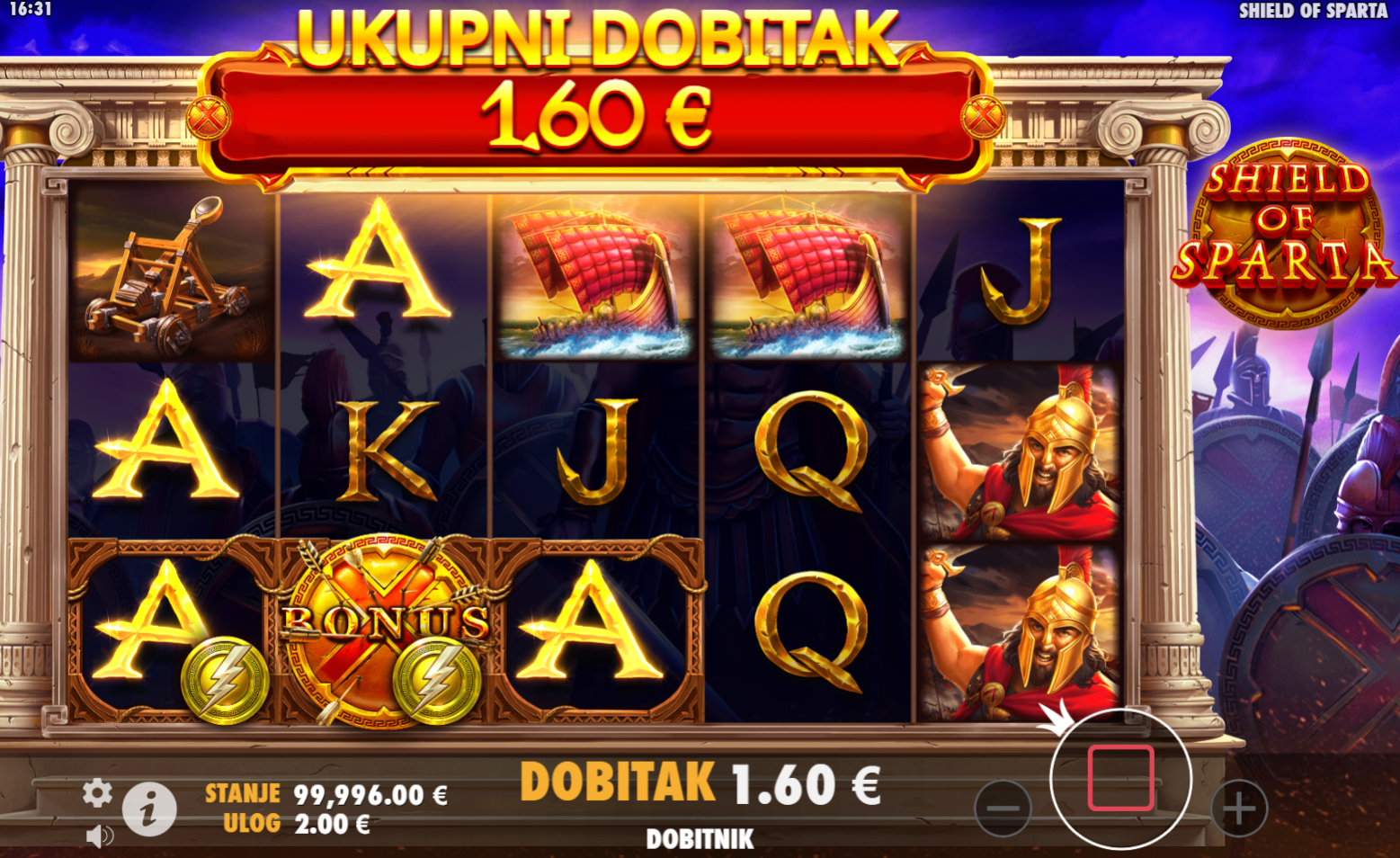 2. Postoji li jackpot u Shield of Sparta™?