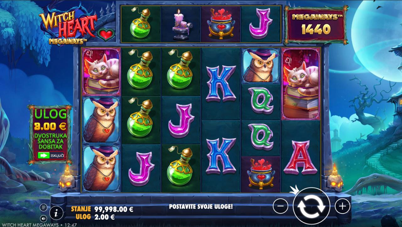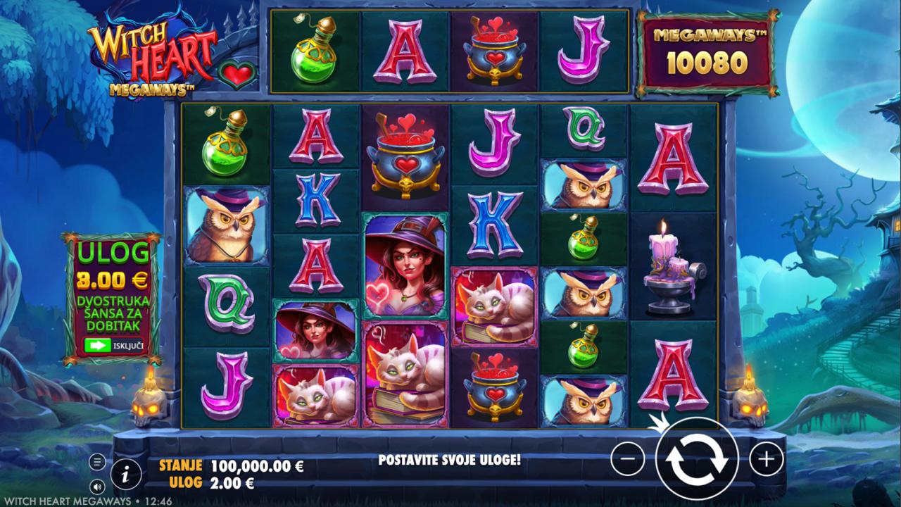 Uroni u mračni svijet magije uz Witch Heart Megaways, slot igru providera Pragmatic Play koja donosi atmosferu čarolija, napitaka i mističnih bića. Vizualno bogata igra s tamnim fantasy stilom pruža uzbudljivo iskustvo uz dinamične promjene na rolama. Iako igra ne uključuje jackpot, Witch Heart Megaways nudi veliki potencijal dobitaka zahvaljujući naprednim bonus značajkama i multiplikatorima.