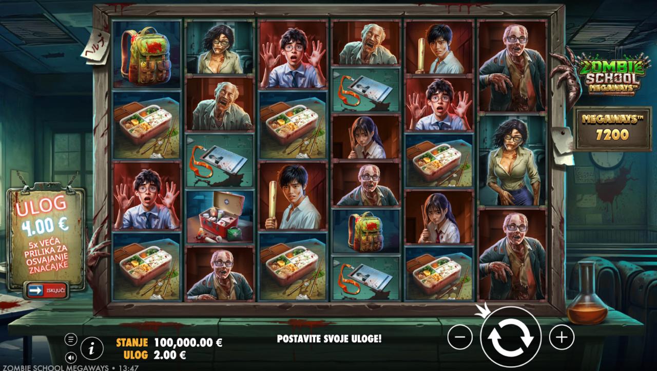 Uroni u zabavno zastrašujući svijet uz Zombie School Megaways, slot igru providera Pragmatic Play koja donosi školsku atmosferu prepunu zombija i mračnog humora. Igra kombinira horor tematiku s dinamičnim Megaways sustavom koji omogućuje velik broj načina za dobitak. Iako igra ne uključuje jackpot, Zombie School Megaways nudi veliki potencijal dobitaka kroz multiplikatore i uzbudljive bonus značajke.