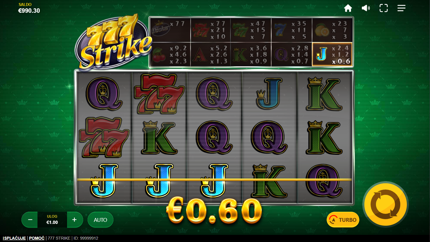 777 Strike ima RTP od oko 95.8%, što je tipično za Red Tiger slotove. Volatilnost je srednja, pa igra nudi balans između čestih manjih nagrada i potencijalno većih dobitaka. To znači da svaki spin može donijeti iznenađenje, bilo kroz redovite kombinacije ili bonus rundu. Igra pruža dovoljno dinamike da zadrži pažnju i početnika i iskusnih igrača. Savršena je za one koji traže stabilnu, ali uzbudljivu kasino avanturu.