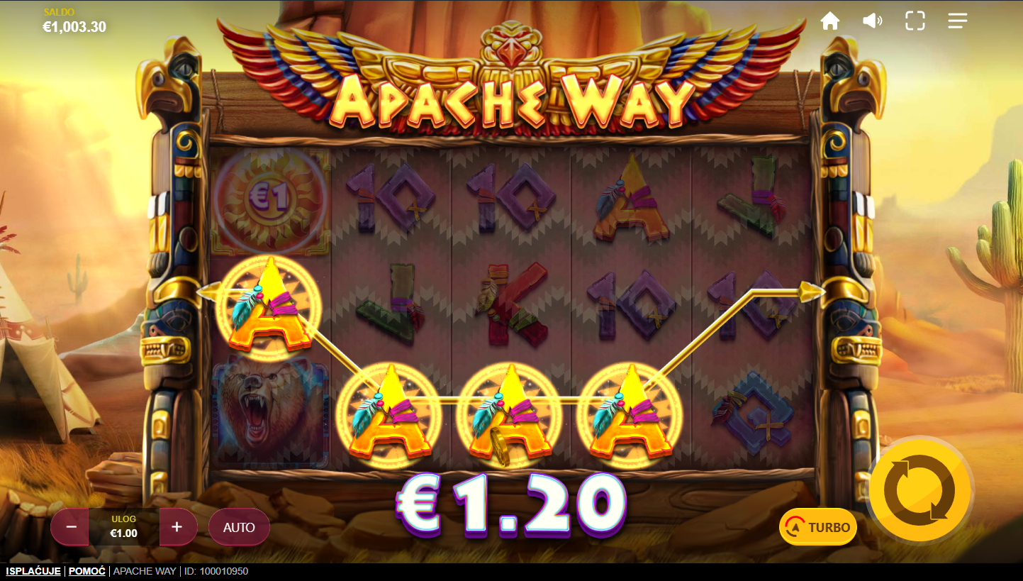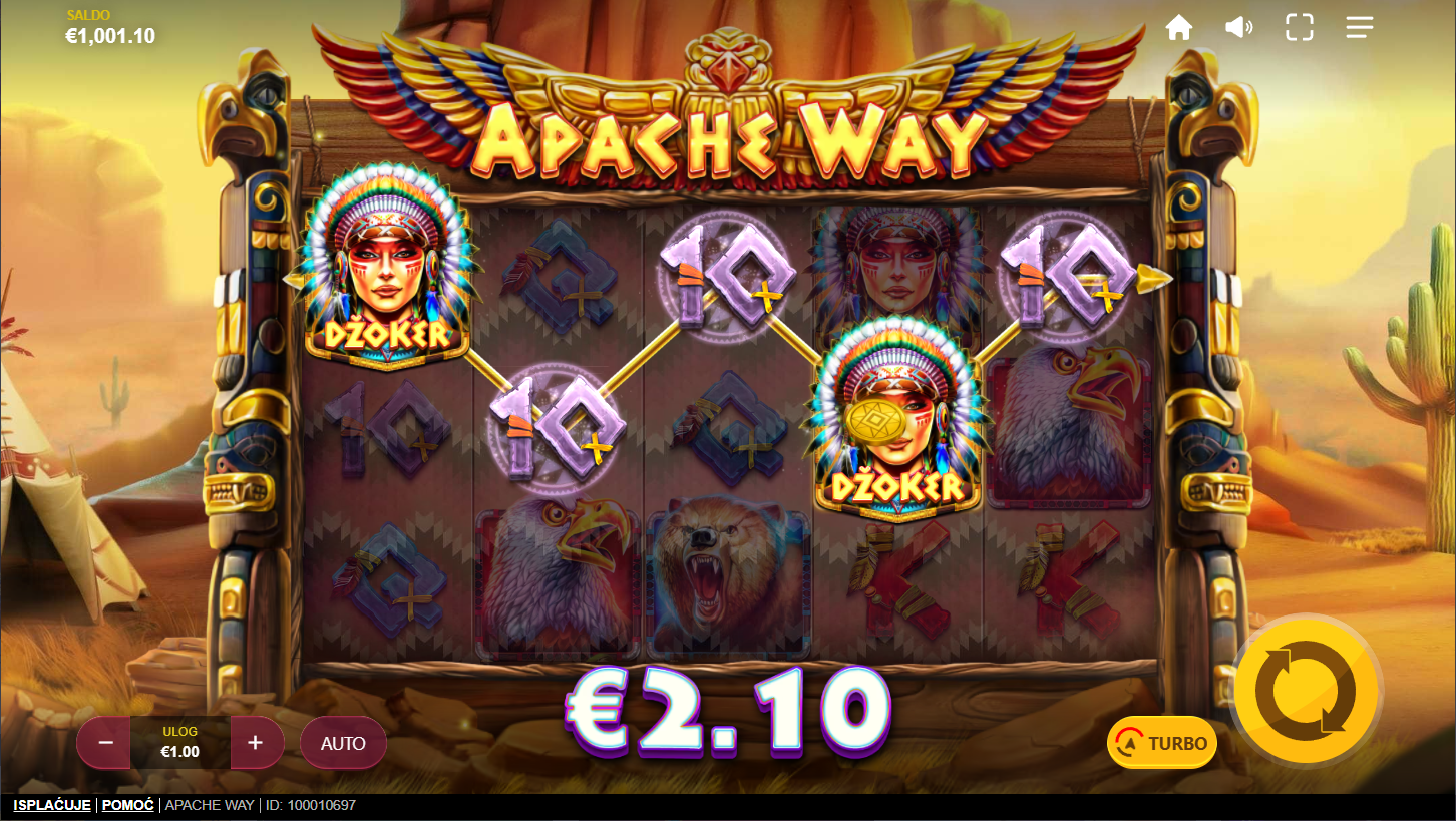 Apache Way je slot od Red Tiger-a inspiriran duhom američkih domorodaca, s bogatom grafikom i simbolima poput totema, životinja i plemenskih maski. Igra se na 5 valjaka i 25 linija isplate, uz atmosferu puna ritma i mistike. Posebni totem scatter simboli aktiviraju bonus rundu s besplatnim vrtnjama. Bonus značajka Sacred Wilds donosi širenje i zaključavanje wildova za još veće nagrade. Svaki spin prenosi te u svijet tradicije, prirode i skrivenih blaga.