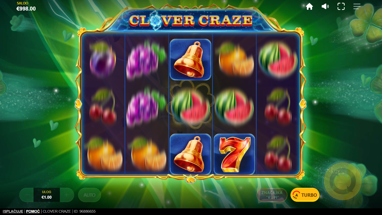Dobrodošao u čarobni svijet sreće od Red Tigera, Clover Craze! Na bubnjevima se vrte zlatne djeteline, sjajne sedmice i zvona, a svaka vrtnja miriše na irsku čaroliju. Najveći adut su posebne zlatne djeteline koje mogu narasti do ogromnih simbola i donijeti multiplikatore koji rastu kao djetelina poslije kiše. Ovdje te čeka slot prepun boja, energije i osjećaja da je sreća uvijek na dohvat ruke!