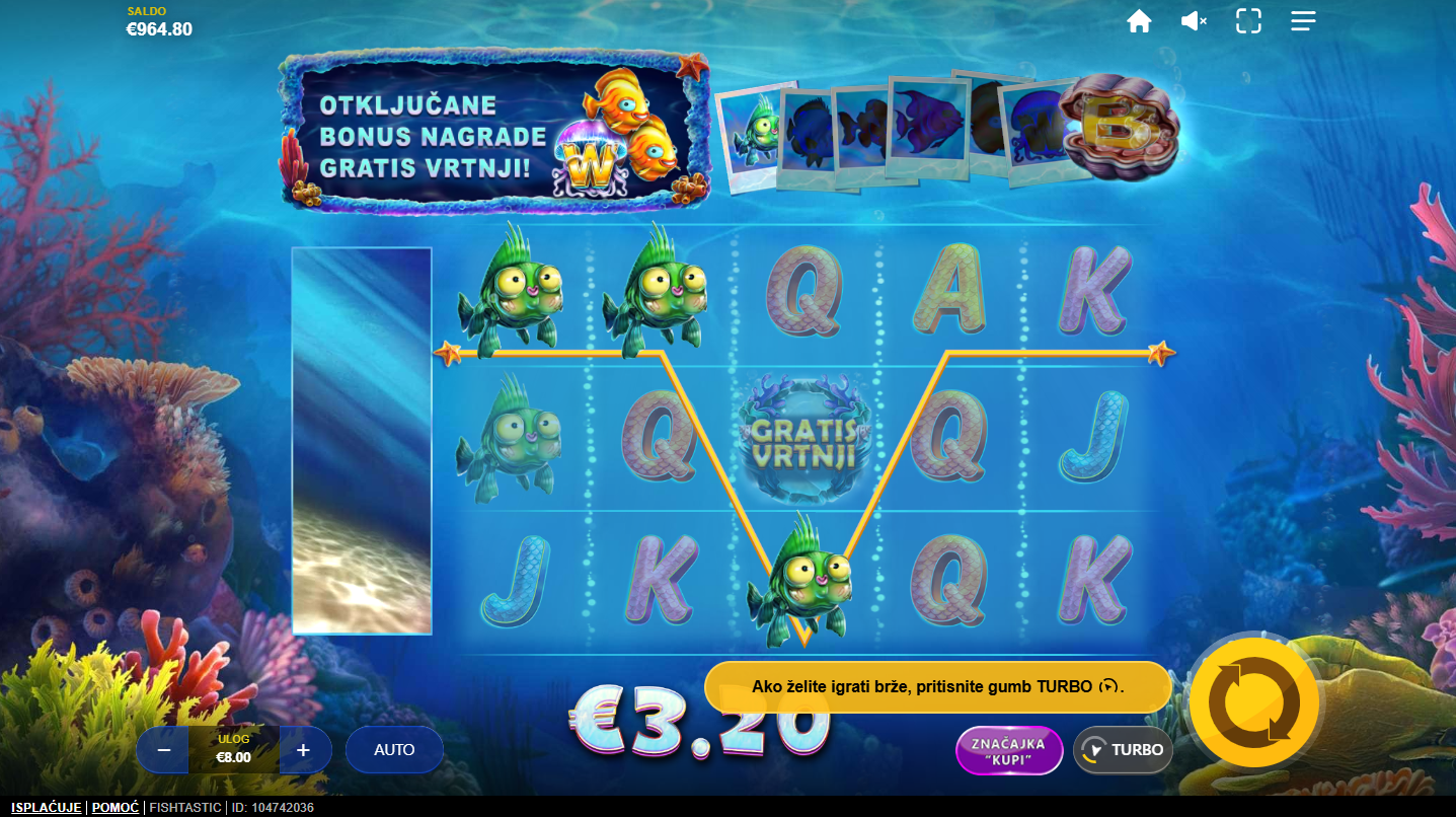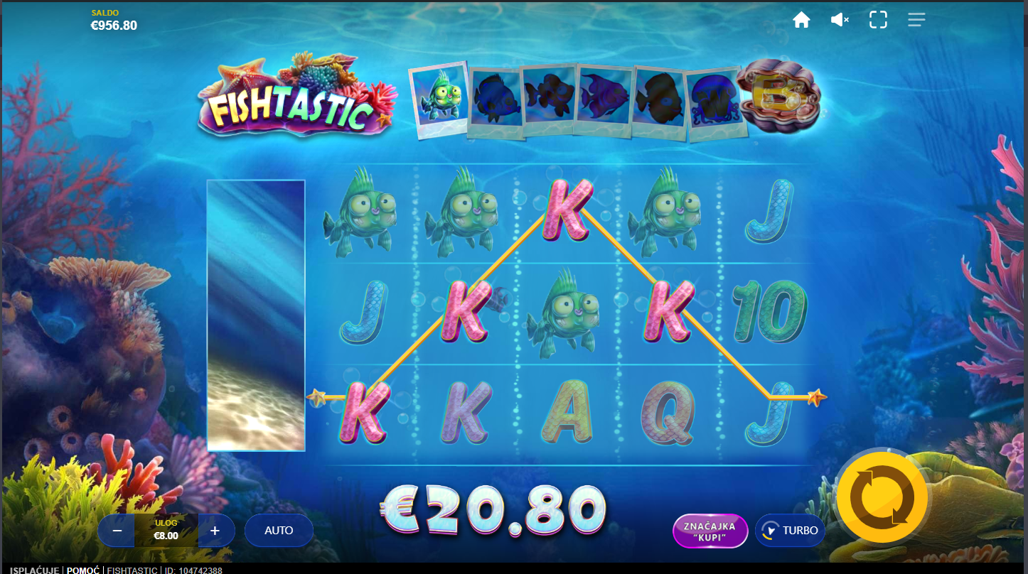 Fishtastic ima RTP 95,65% i srednju volatilnost!