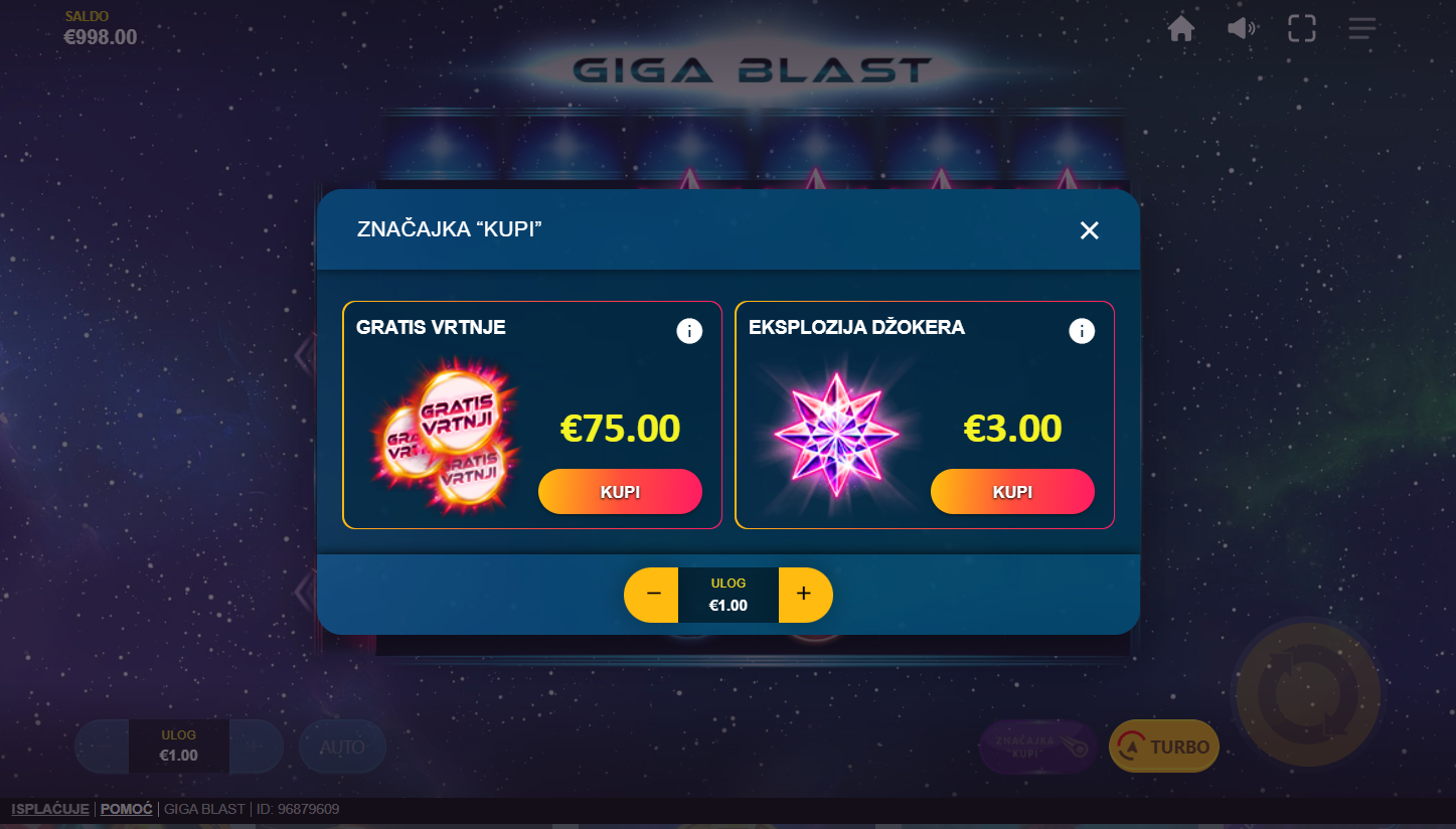 4. Koji su minimalni i maksimalni ulozi u igri Giga Blast?