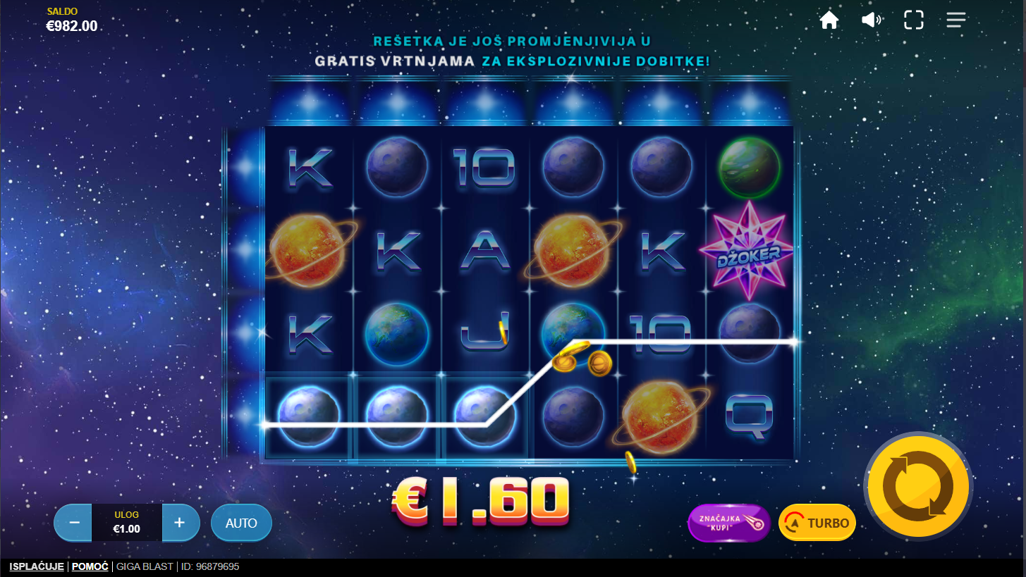 Spremi se za svemirski spektakl s providerom Red Tiger i Giga Blast! Na 6 bubnjeva i 4 reda eksplodiraju planeti, zvijezde i wild simboli u pravom vatrometu boja. Svaka vrtnja vodi te dublje u galaksiju punu iznenađenja, gdje eksplozije pretvaraju obične simbole u ogromne dobitke. Uz futuristički dizajn i zvučne efekte, osjećat ćeš se kao da si kapetan vlastite svemirske misije!