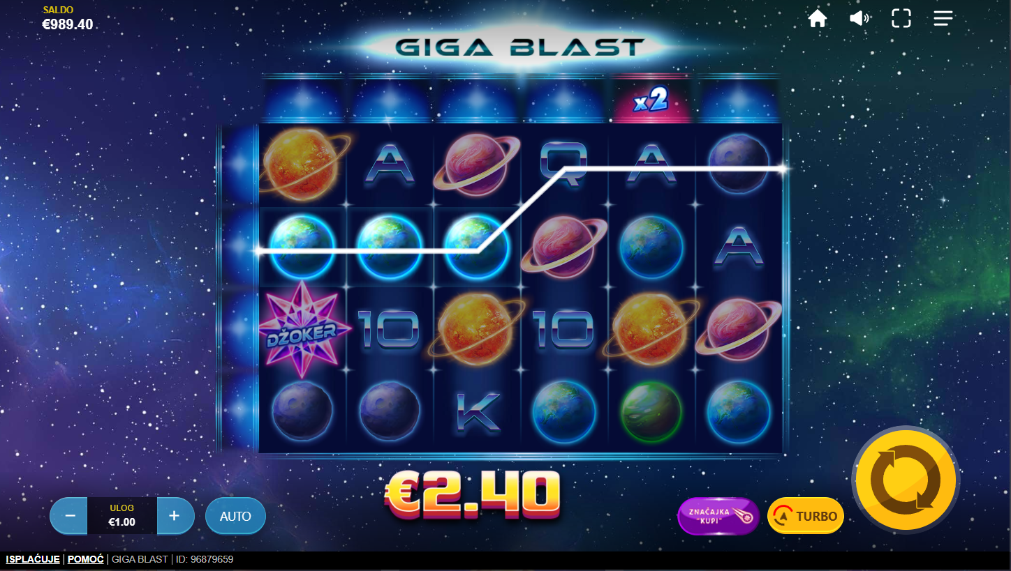 S RTP-om od oko 95.7% i visokom volatilnošću, Giga Blast je igra za one koji žele uzbuđenje i goleme isplate. Možeš doživjeti duže periode napetosti, ali kad svemir eksplodira, nagrade mogu doseći čak 23000 puta tvog uloga! To znači da svaka vrtnja nosi potencijal pravog kozmičkog čuda. Ako voliš igre pune akcije i velikih rizika, ovo je tvoj svemirski jackpot bez jackpota.
